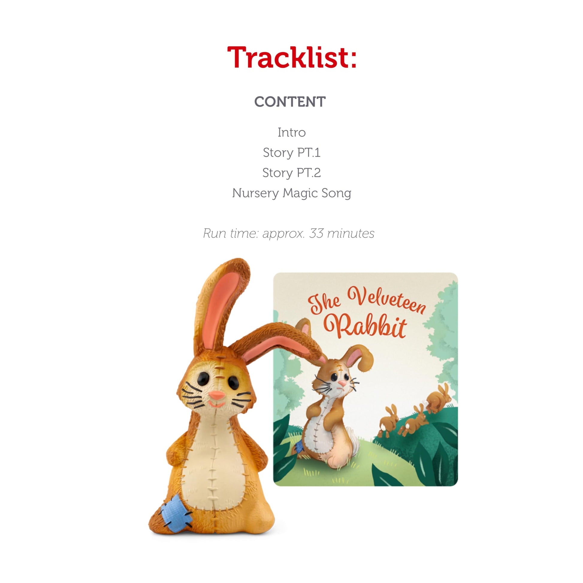 - Q: What age group is the Tonies The Velveteen Rabbit Audio Play suitable for? A: This audio play is recommended for children aged 3 and up, making it a perfect gift for preschoolers who enjoy engaging stories.