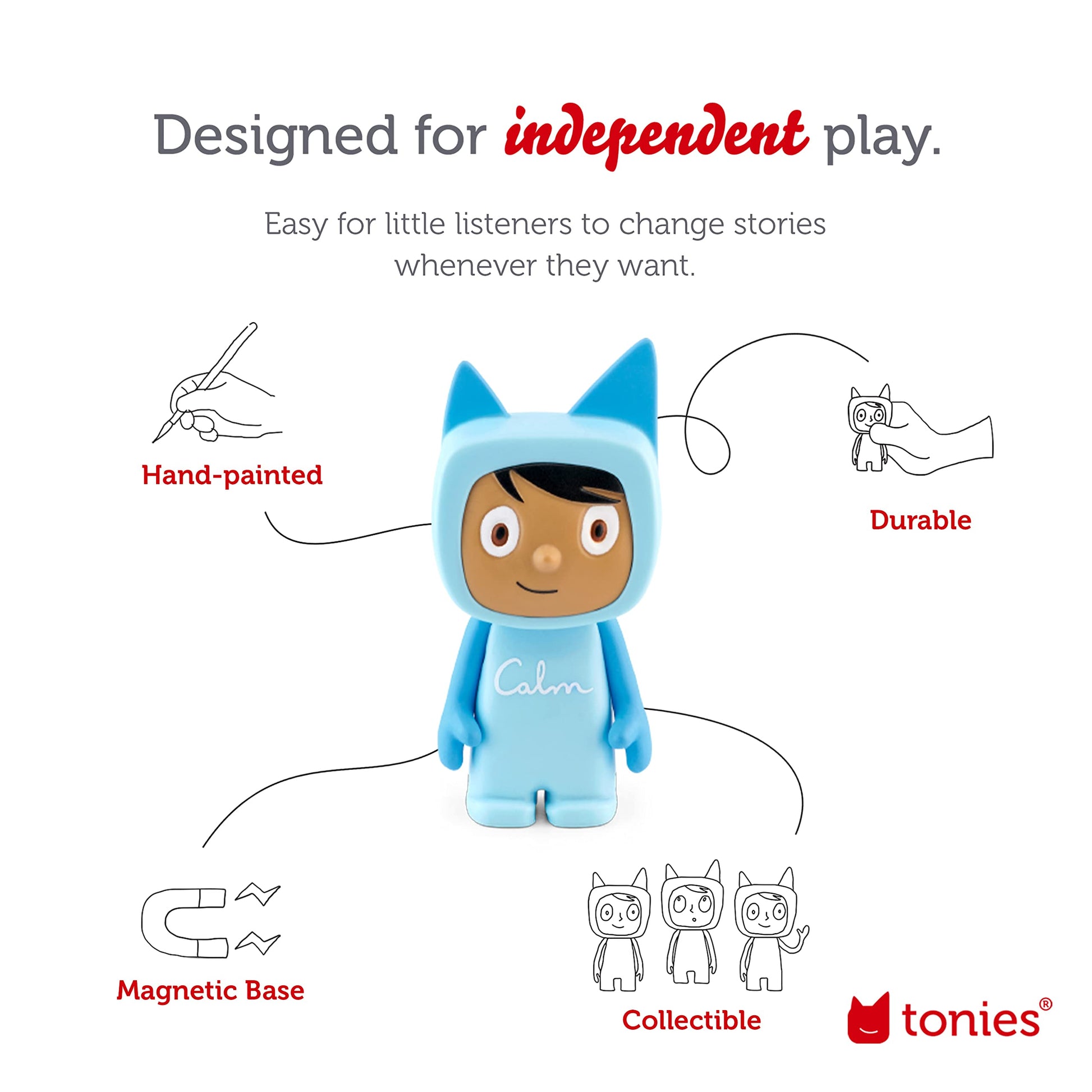 • Q: Do I need any additional equipment to use the Tonies x Calm Mindfulness Audio Play Character? A: Yes, the Tonies x Calm Mindfulness Audio Play Character requires a Toniebox Audio Player to play the audio content. The Toniebox is sold separately.