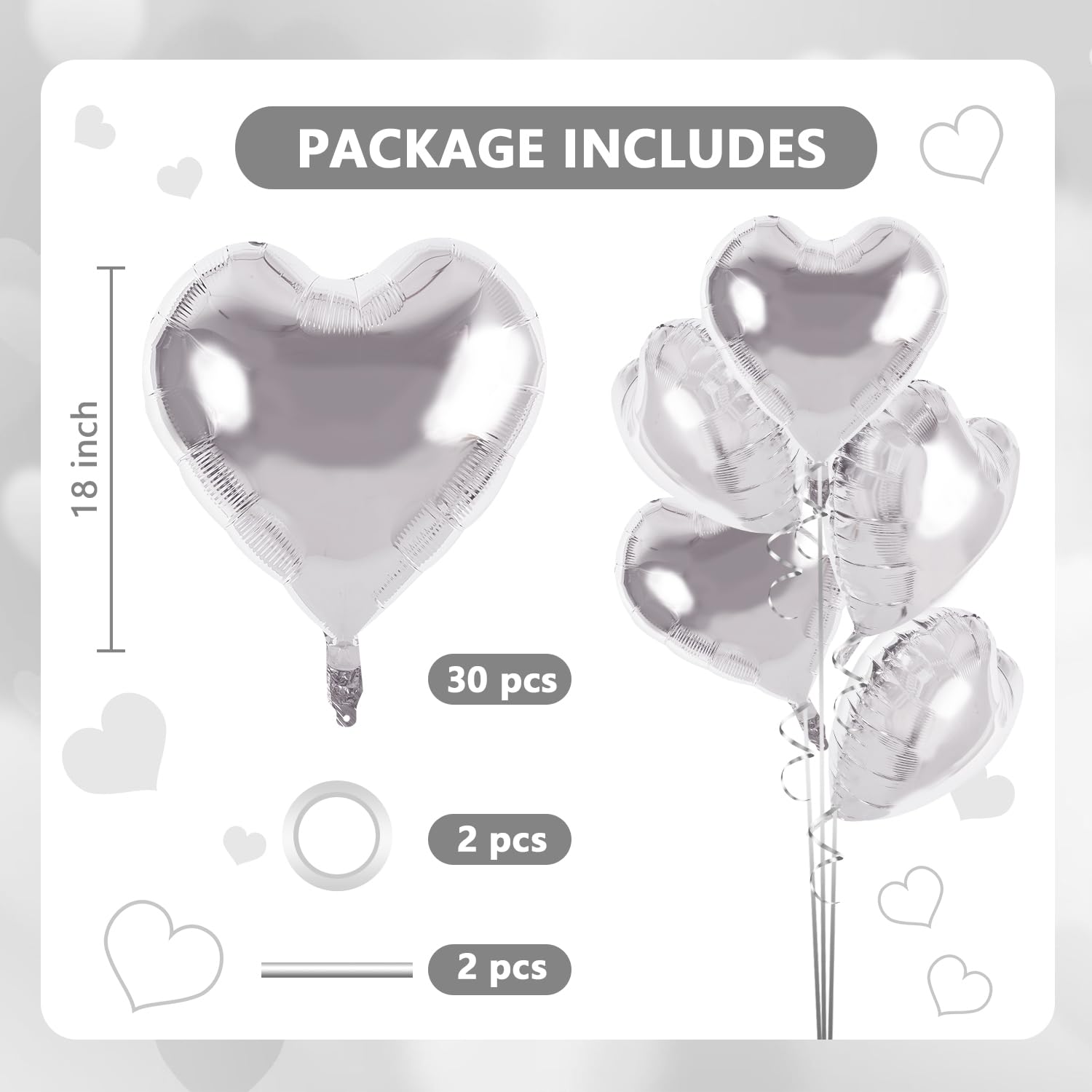 - Q: What size are the balloons in this set? A: The balloons are eighteen inches in size. Each heart-shaped balloon is designed to be large enough to make a significant visual impact at any event.