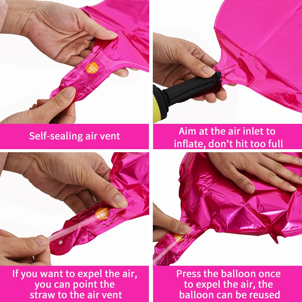 • Q: How do I inflate the Hot Pink Number Balloon? A: You can inflate the Hot Pink Number Balloon using either air or helium. It can be easily filled with a straw or an air handheld pump. For optimal results, fill it 90%-95% full to ensure proper sealing after inflation.