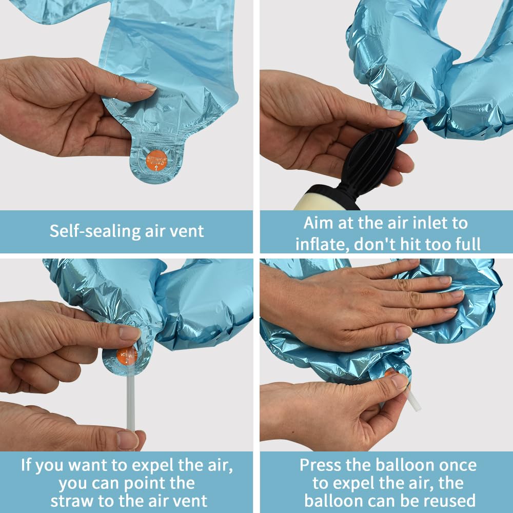 - Q: How do I inflate the letter balloons? A: You can easily inflate the letter balloons using the included straw or a hand pump. The balloons feature self-sealing valves, allowing for convenient inflation and deflation without any mess.