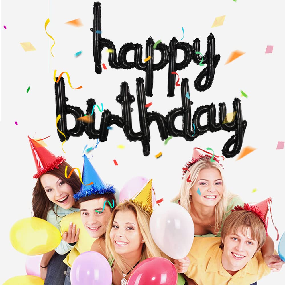 Size And Features: 16 Inch Black Happy Birthday Balloons Banner Color:Black Material:&Nbsp;Foil Inflated: Support Helium Or Air Inflate. It Is Not Recommended To Inflate Too Full, Easy To Burst Perfect For Many Occasions Celebration: Birthday Party, Wedding, Baby Shower,Outdoor Party, Family Party, Celebration And Other On-Site Decoration.