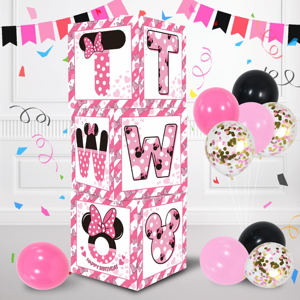 Toniful Pink Mouse 2Nd Birthday Party Supplies Pink Balloon Box With Letters