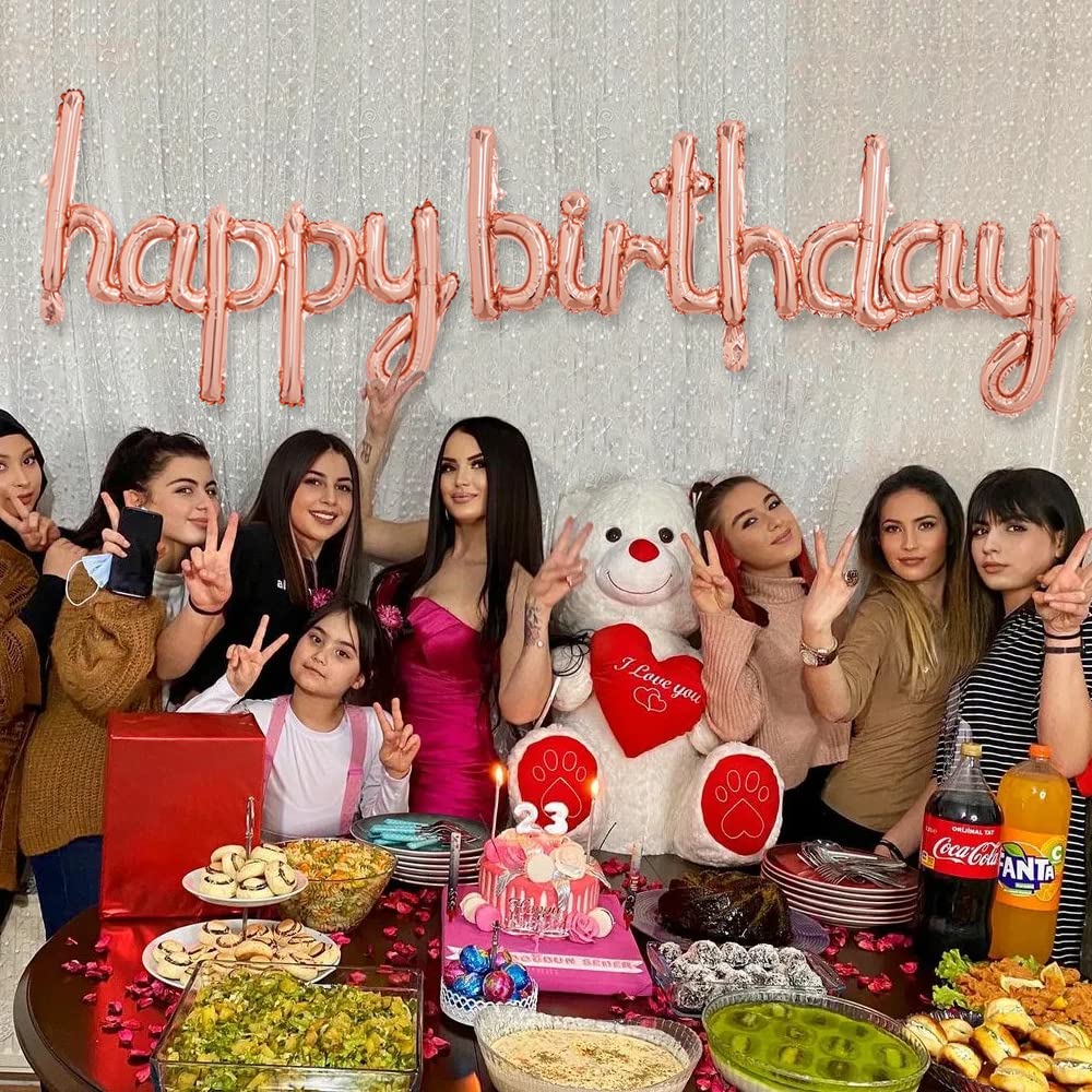 Size And Features: 16 Inch Rose Gold Happy Birthday Balloons Banner Color:Rose Gold Material:&Nbsp;Foil Inflated: Support Helium Or Air Inflate. It Is Not Recommended To Inflate Too Full, Easy To Burst Perfect For Many Occasions Celebration: Birthday Party, Wedding, Baby Shower,Outdoor Party, Family Party, Celebration And Other On-Site Decoration.
