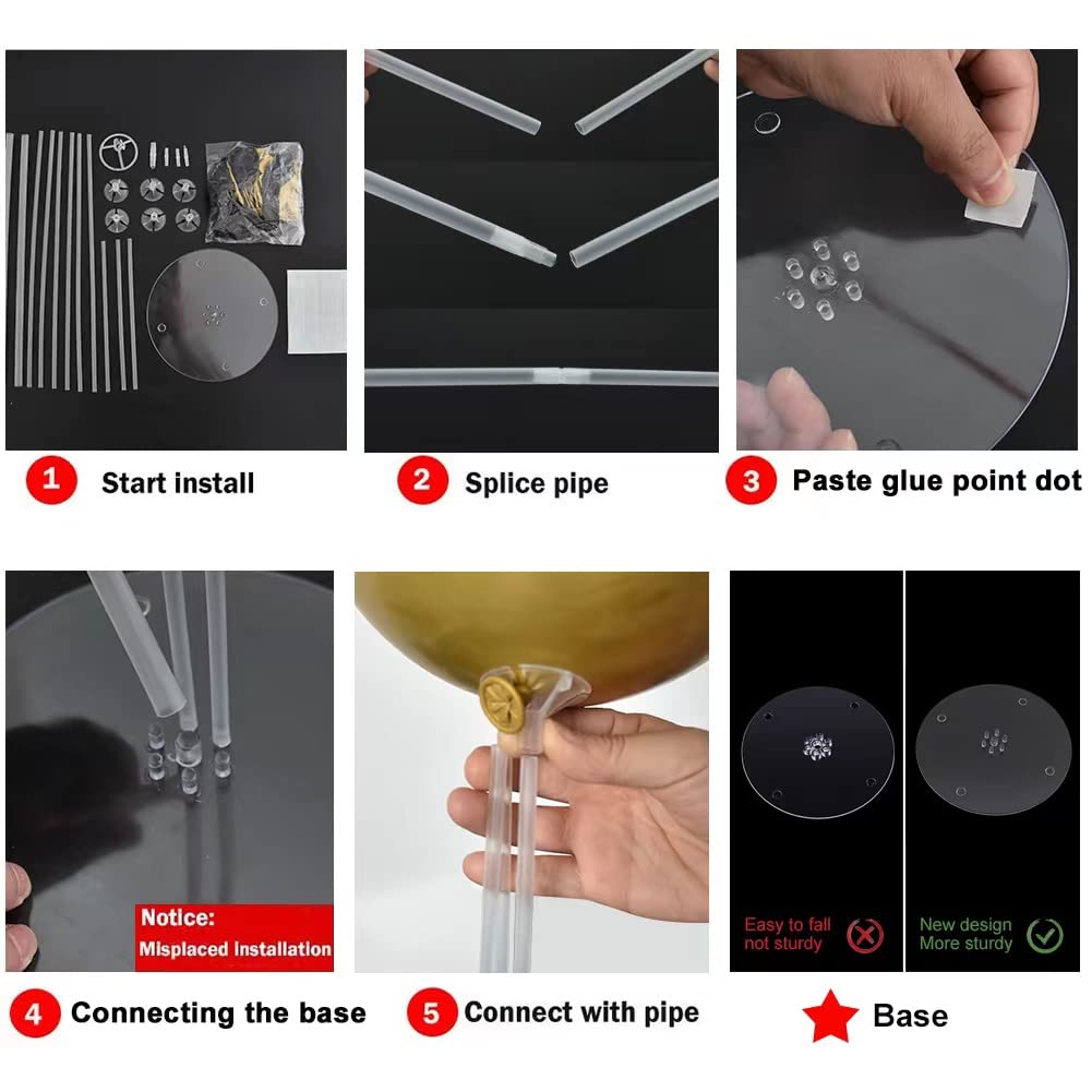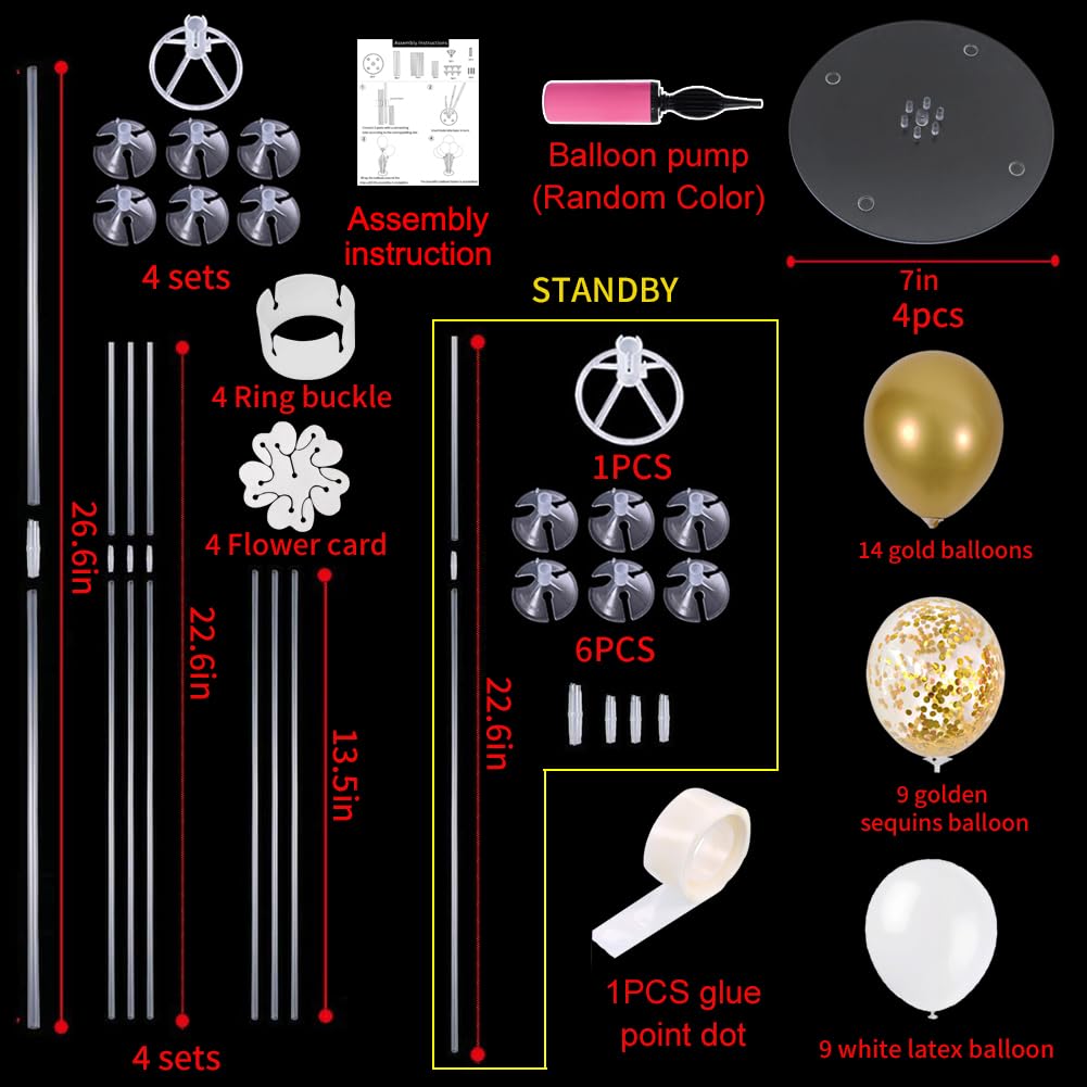 • Q: What materials are the balloon stands made from? A: The balloon stands are made from durable, reusable plastic, ensuring they can be used multiple times for various events. The balloons included are made from latex.