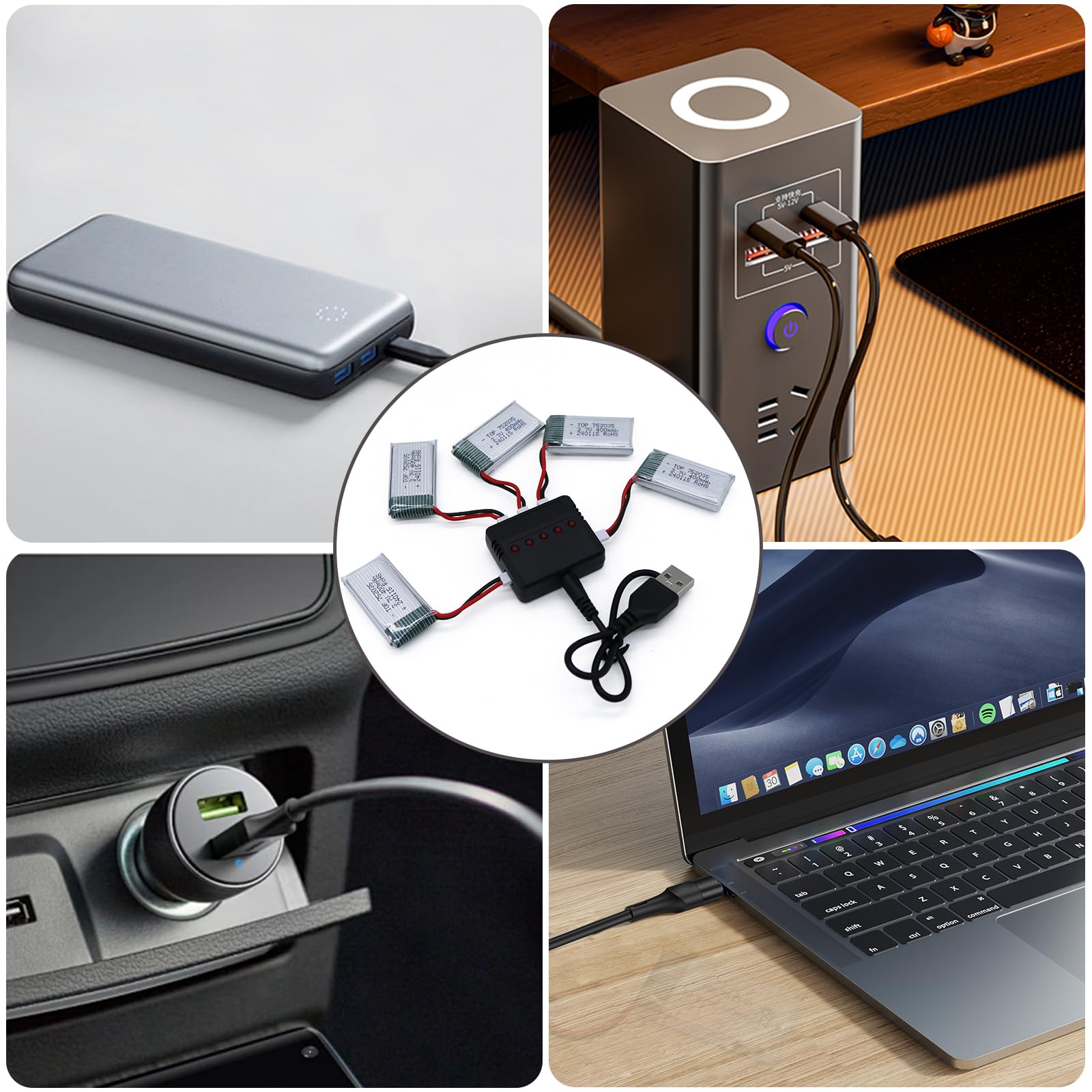 Tosiicop 3.7V 400Mah Lipo Battery - 5Pcs Drone Batteries with 5in1 USB Charger for Syma Q11 H99W H31 H6C H98 TR-C385 TR-P51 TR-F