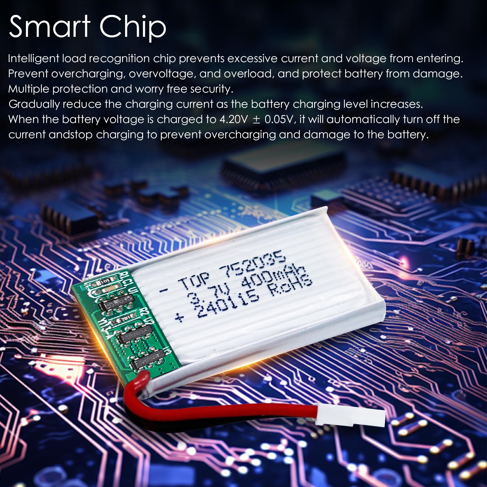 - Q: What is the size and weight of each Tosiicop battery? A: Each Tosiicop 3.7V 400mAh Lipo battery measures approximately 1.58 x 0.83 x 0.31 inches and weighs about 12 grams (0.026 lbs). This compact size makes it easy to handle and install in compatible drones.