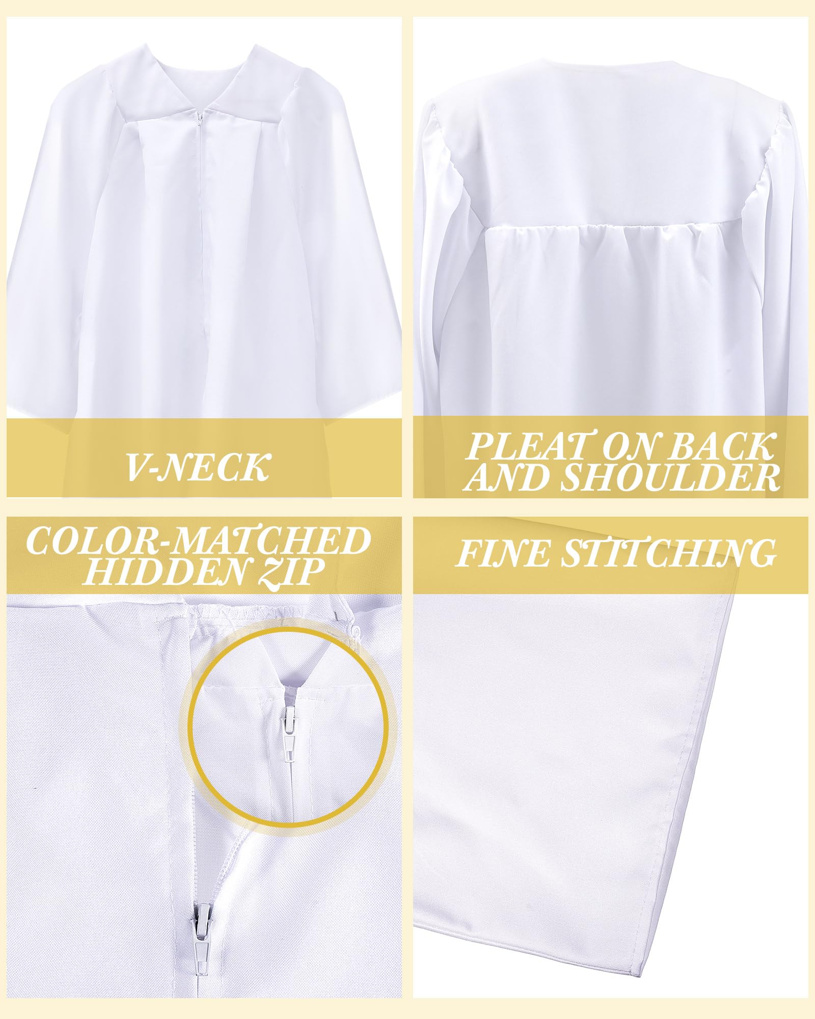 Features: These baptism robes for kids make thoughtful presents for your loved ones. Surprise a choir member, a religious leader, a music teacher, or people who would appreciate these elegant robes as a present. The matte white design of these baptismal robes for kids exudes elegance and sophistication. It allows for easy coordination with other choir accessories or garments. Specifications: Material: polyester Color: as shown in the picture Size: as shown in the picture Package includes: 3 x Unisex matte choir robes Notes: Manual measurement, please allow slight errors on size. The color may exist a slight difference due to different screen displays.