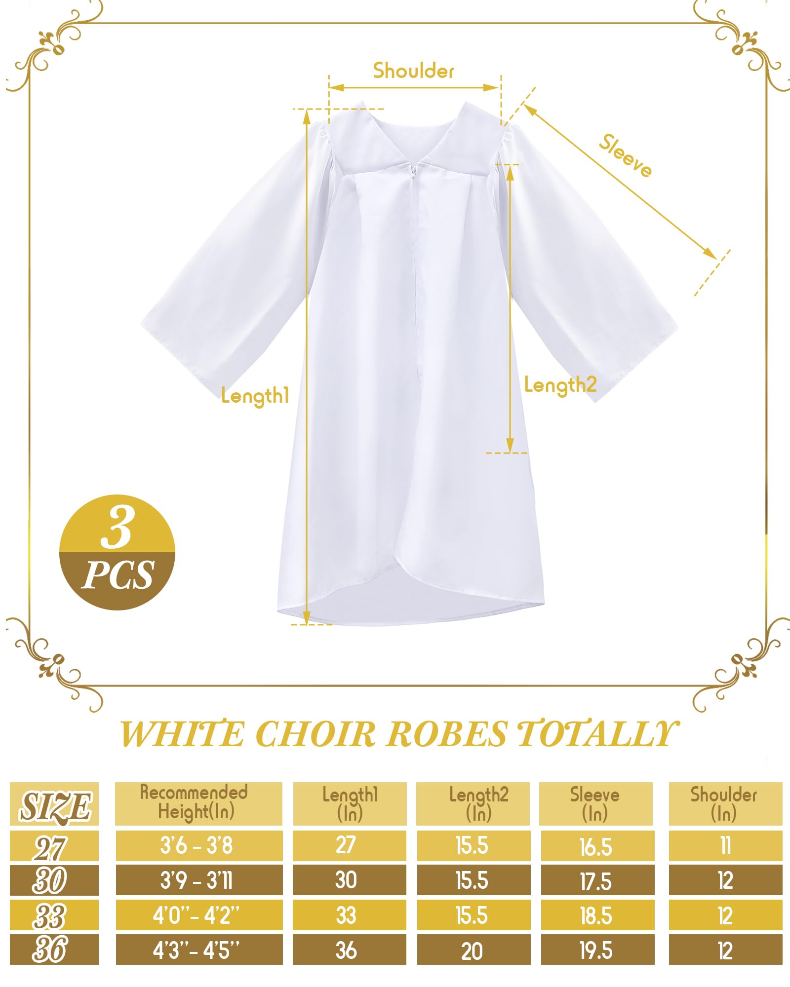 Toulite 3 Pcs Unisex Matte Choir Robes Kids Graduation Gown for School Judge Robes Costume for Baptism Church Event Pastor(Size