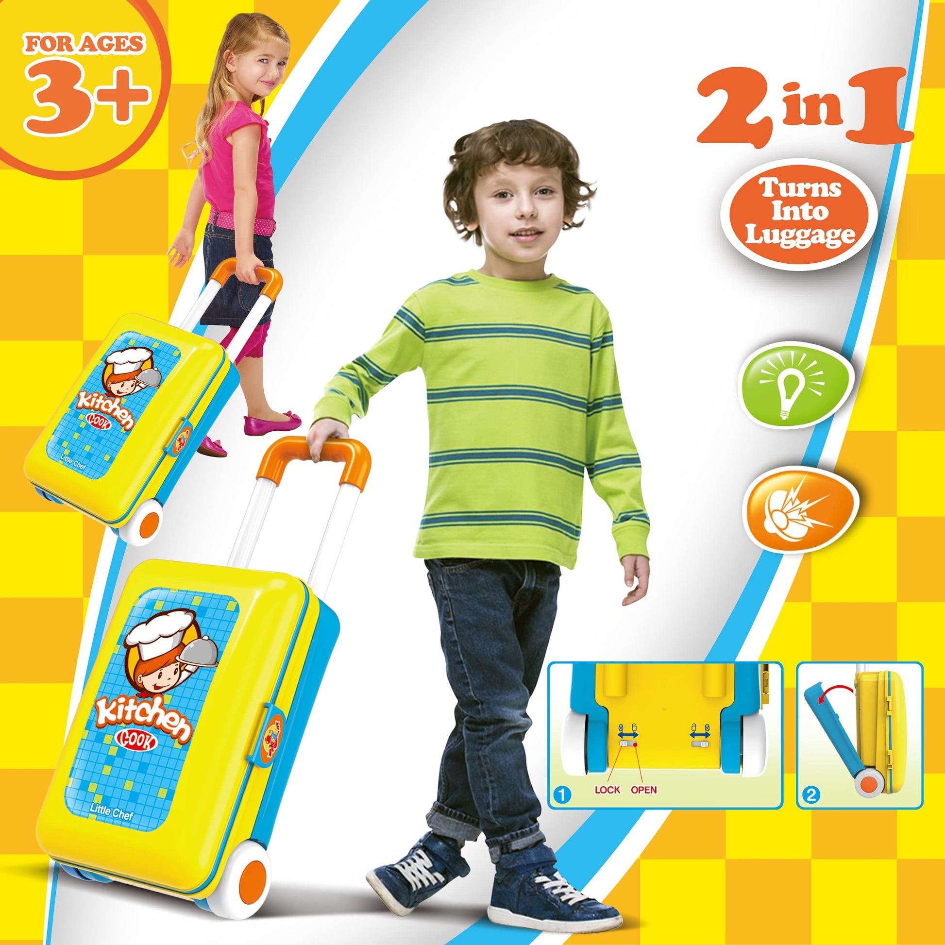 Toy Chef 2-in-1 Travel Suitcase Kitchen Set for Children | Includes Toy Pots, Pans, Dishes, Utensils & Foods ABS Plastic Pretend