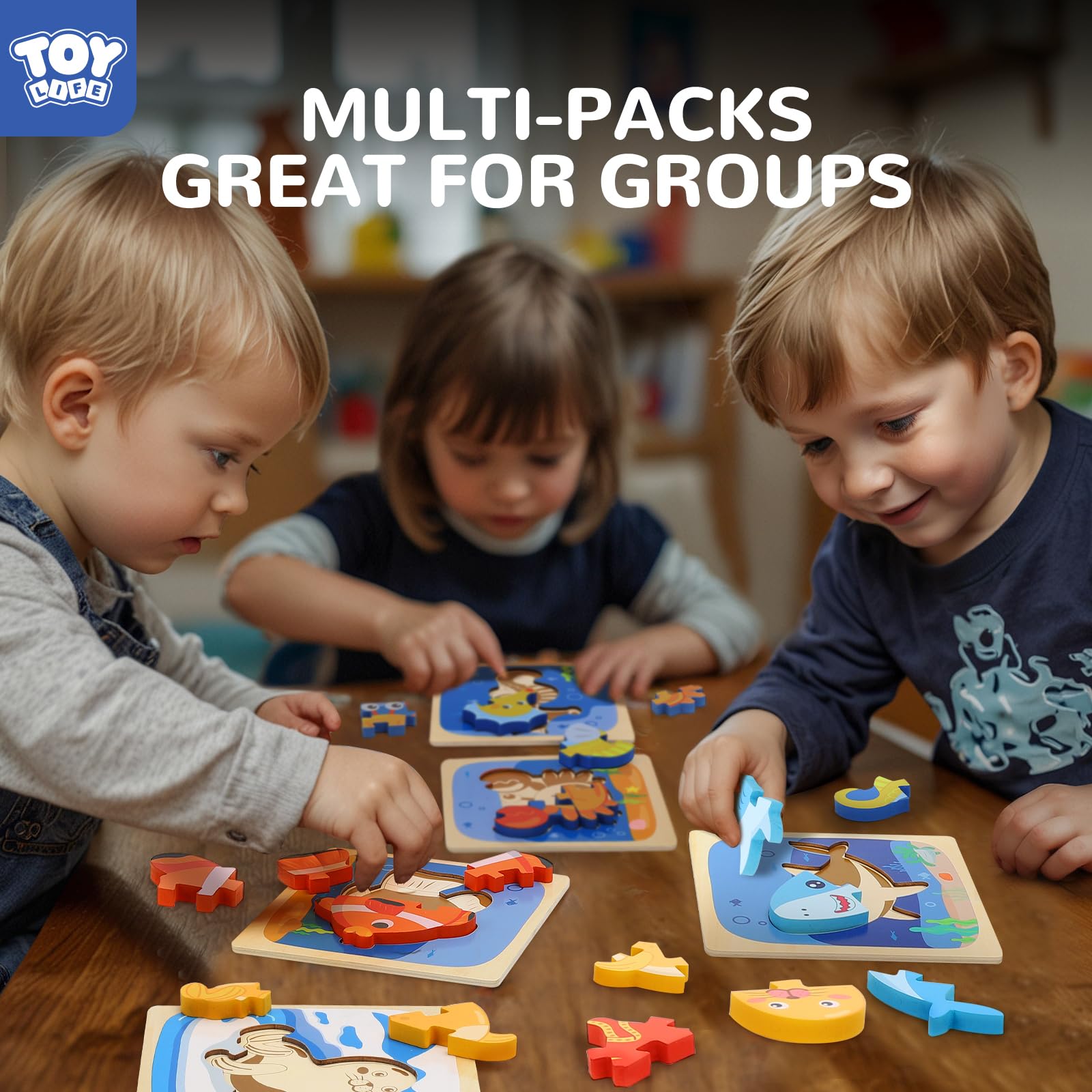 - Q: What types of sea animals are included in the puzzle set? A: The TOY Life Wooden Puzzle includes eight different marine animals: a dolphin, turtle, fish, whale, octopus, sea lion, crab, and seahorse, all designed in bright colors to engage toddlers.