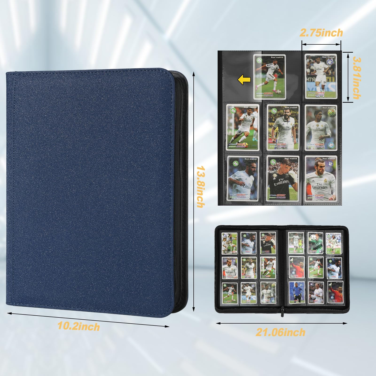 GERMUN 9-Pocket Cards Binder fit for 540 cards: A must have for trading card collector's beautiful and compact card binder for kids to carry around wherever they go get this zipper binder by GERMUN. Features Youll Love: 1. GERMUN 9-Pocket cards binder for trading cards with PVC-Free EVA foam and PU leather2. cards binder for trading card with sleeves with plenty of room to hold 540 trading cards3.binder for trading cards with sleeves have all cards in the binder and not all over the place 4.card binder for trading cards with 30 sleeves compatible with universal standard size trading cards game cards sports cards and more. Perfect Match Standard Binder :Our card binder for trading cards with sleeves is great for trading cards storage keeps your trading cards safe protected and organized! perfect for most. Whats In The BoxA carrying binder with total 540 pockets card sleeves ( 30 pages double-sided use) trading cards are NOT INCLUDED. After Sales Service:Please don't hesitate to reach out to us if you have any issues with your purchase - we're here to help!Our company will reply within 12 hours after receiving the email and resolve it until you are satisfied.