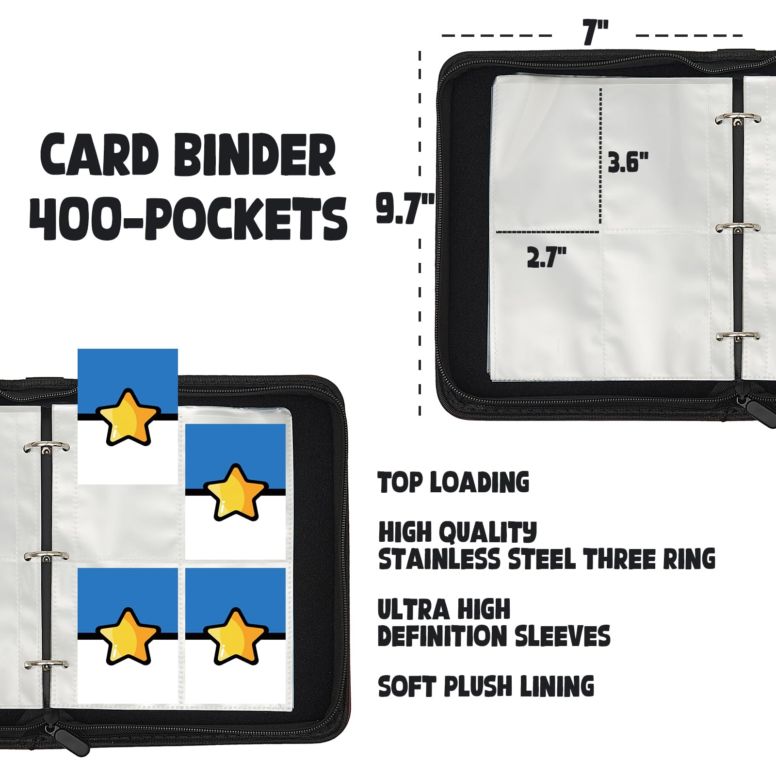 Trading Card Binder 9 Pocket Pages Top Loading 900 Card Storage 3 Ring Design With Zipper Boy's Gift (Blue 400 cards)