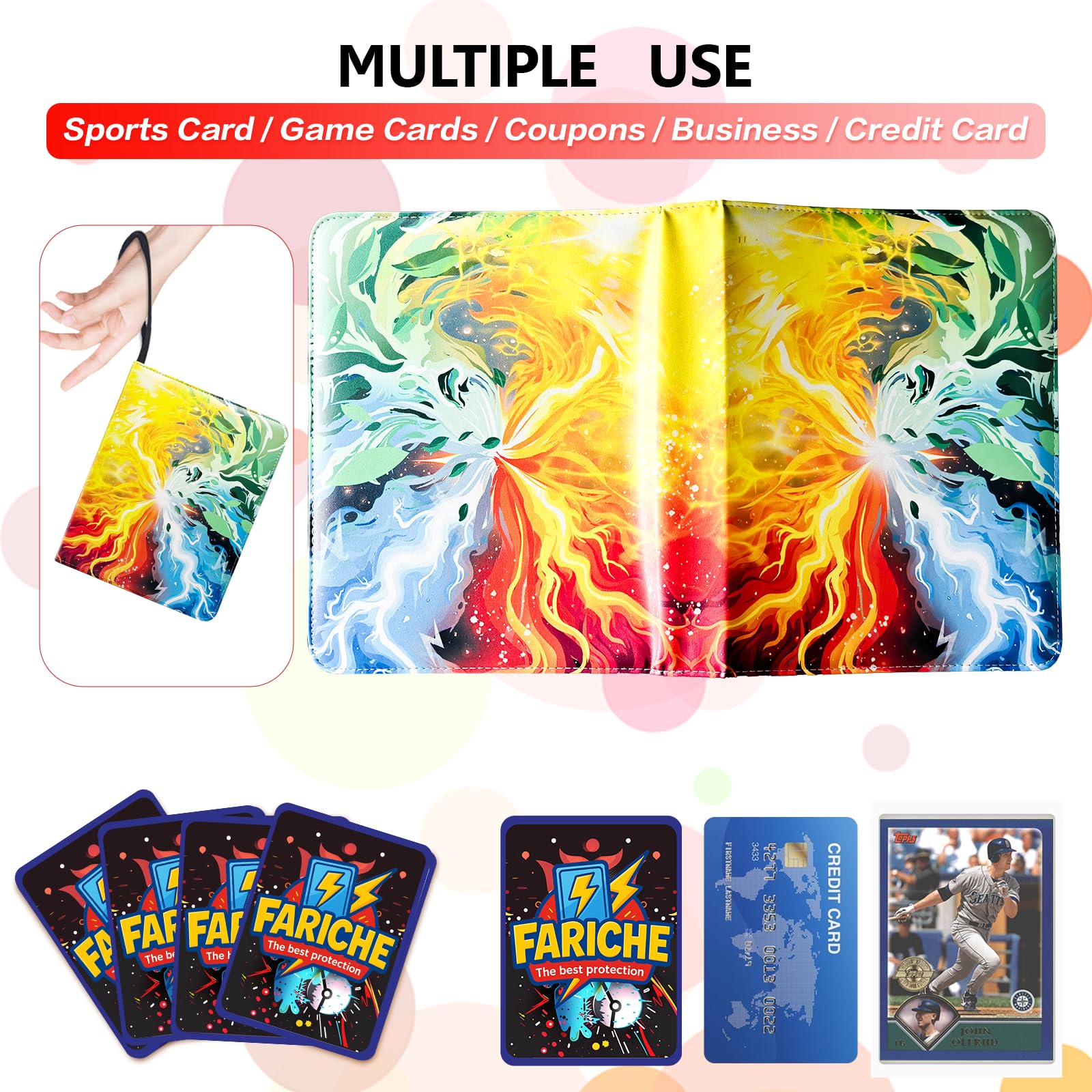FARICHE 9 Pocket Card Binder for Trading Cards:A must have for cards collection organizing and storing cute and quality binder for kids to carry around get this zipper binder by FARICHE. Features Youll Love:1. 9 pocket card binder for trading cards with PVC-Free EVA foam and PU leather2. Trading card binder holder with plenty of room to hold 900 trading cards3. Carrying binder compatible with trading cards have all cards in the binder and not all over the place4. Trading card binder collectors album compatible with universal standard size trading cards game cards sports cards and more.' Perfect Match Standard Binder :Our baseball card binder collector album holder is great for trading cards keeps your trading cards safe protected and organized! Designed for CollectorsOur 9 pocket card binders are suitable for a variety of Trading Cards Basketball Game Card Baseball Cards MTG Card Game and other collectible cards. A great gift choice for the upcoming birthdays and holidays. SecureQuality zipper seals the binder to keep cards intact when not in use. top-loading pockets prevent your cards from spilling out and keep them safe during transportation. Going to a tournament? enhanced Zip Binders will keep your cards safe and secure. ProtectionOur zipper card binder offer the best protection for your trading cards. Surface is made of waterproof smooth PU which touched very comfortable. Protect your cards from dink dents and scrapes. Keep your valuable cards in mint condition. Packing including:FARICHE 9-Pocket Card Binder for Cards X 1( Up to 900 cards)
