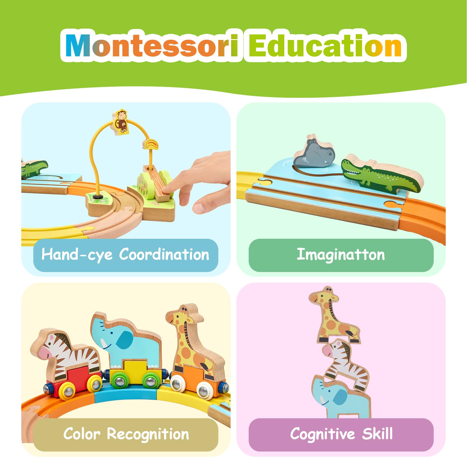 View compareTrain Set For Toddlers 18 Months+ Animal Wooden Train Set Toys For Toddler, Montessori Toys For 2 Year Old, Magnetic Train Toys