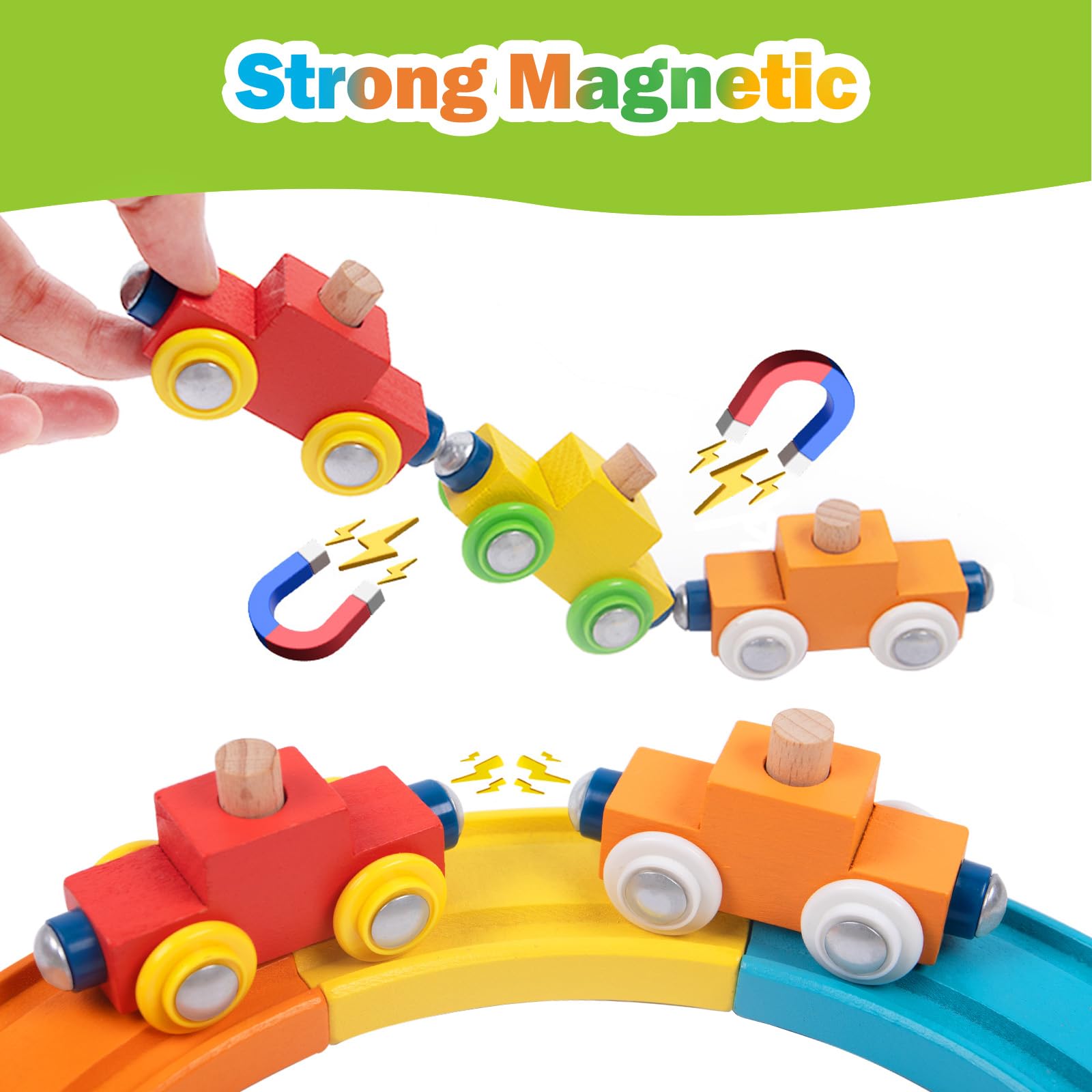 - Q: Does the train set require batteries to operate? A: No, the Wooden Train Set does not require batteries. It features a simple design where the magnetic trains and cars can be pushed by hand, making it easy for toddlers to play.