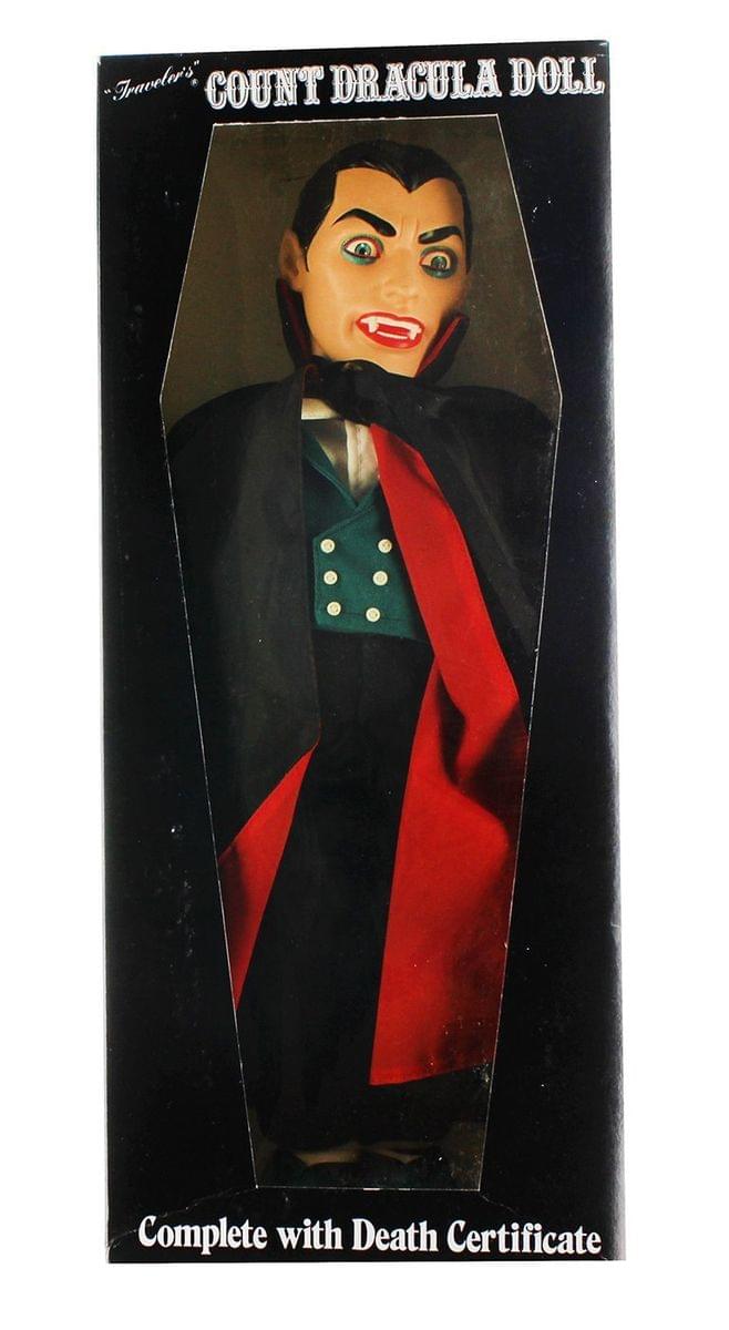 - Q: Is the Count Dracula doll from Traveler Trading Co. new or used? A: This doll is new in box and has never been opened, ensuring its pristine condition for collectors.