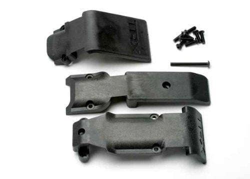 Skid plate set, front (2 pieces, plastic)/ skid plate, rear (1 piece, plastic) Use Traxxas stock and hop-up replacement parts to get the most out of your Traxxas RTR vehicles. This product is made from high quality materials and designed for long-lasting performance. This is replacement hardware for use on Traxxas vehicles; consult your user's manual for exact parts listings.