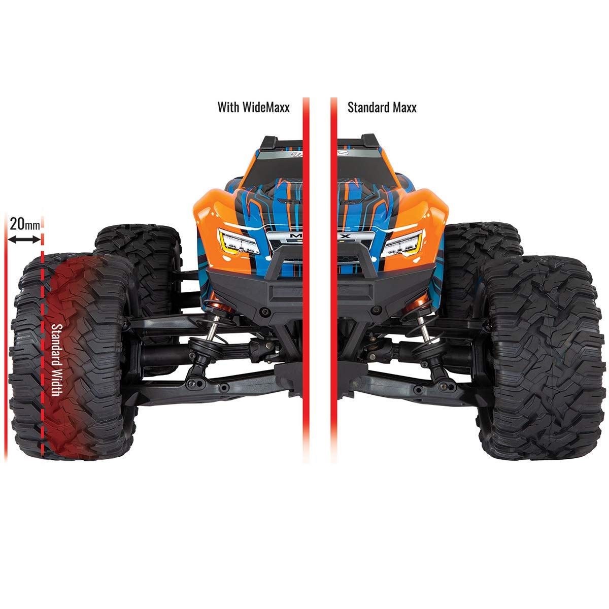• Q: How does the WideMaxx Suspension Kit affect the track width of my Traxxas Maxx? A: The WideMaxx Suspension Kit increases the track width by 1.57 inches (40mm), which enhances stability and handling, especially during high-speed maneuvers.