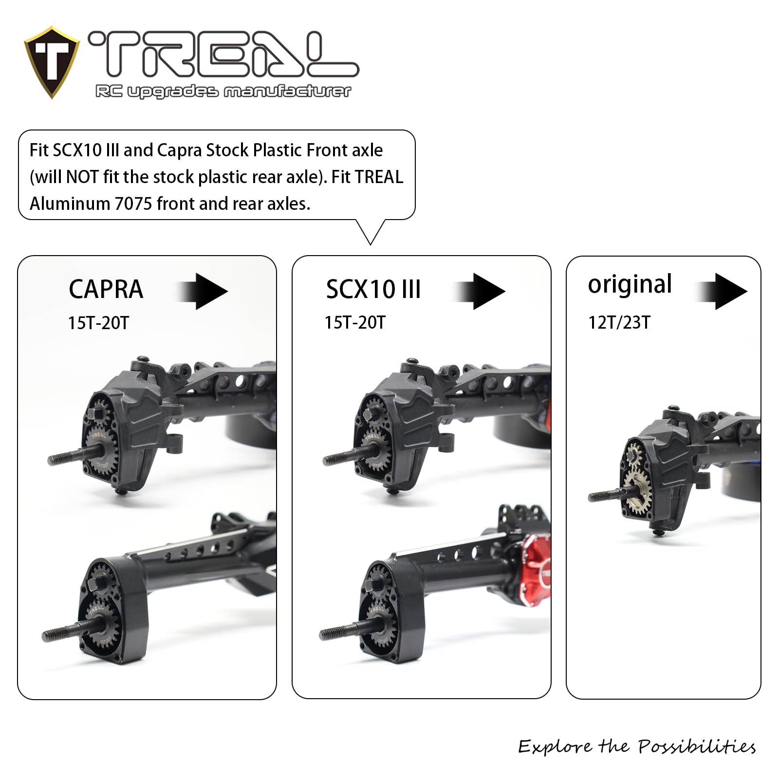 Treal Scx10 Iii/Capra Overdrive Portal Gears Harden Steel Gears Compatible With Axial 1/10 Scx10 3 Capra (15T/20T),Overdrive 43%