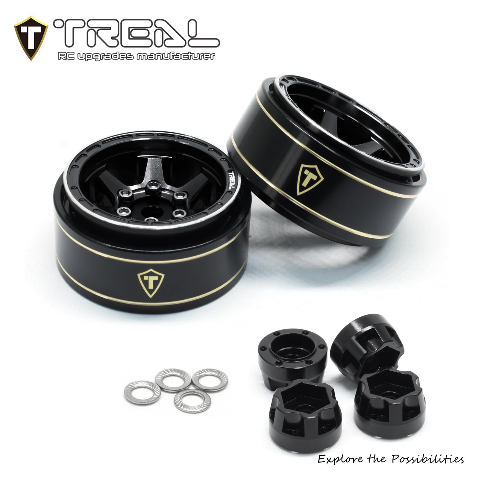 TREAL SCX24 Wheels 1.0'' Beadlock Wheels (4P) Scale-Look Concave Six Spoke Rim Crawler Wheels for Axial SCX24 -Type D Features: - 1.0'' wheel size for 7mm Hex (removable adaptor for different offset) -Fits SCX24 Bronco Gladiator C10 Deadbolt -Precision CNC machined aluminum 6061 Rims -Brass rings (balck coated) to add weight and help the crawler performance Specification: -Outer Diameter: 31mm(1.22'') -Width: 15mm (0.59'') -Weight: Approx 26.6 grams(0.058 lb) per wheel (fully assembled) -Hex Hub: 7mm(0.275'') -Axle Through Hole Dia.: 3mm(0.118'') -Screws: M1.4*4 Package Includes: -Aluminum Wheel rims with Brass Rings assembled kit 4pcs -Hardwares After-sales service >>Please kindly contact us for any manufacture quality or install issue, we will answer within 24 hours. >>We provide free replacement or 100% refund for any quality issue.
