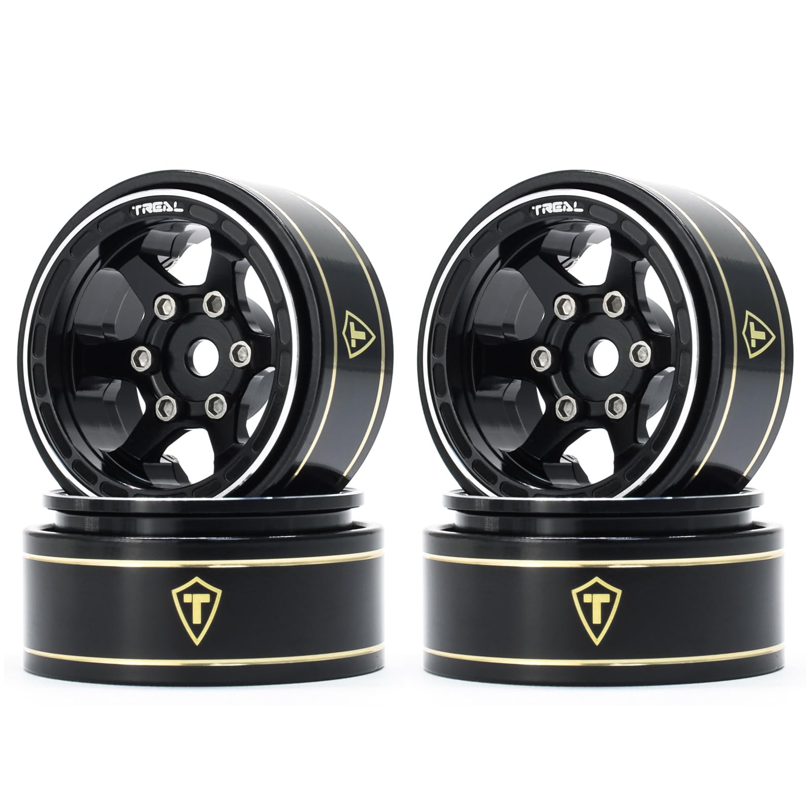 View compareTREAL SCX24 Wheels 1.0'' Beadlock Wheels (4P) Scale-Look Concave Six Spoke Rim Crawler Wheels for Axial SCX24 -Type D (Black)