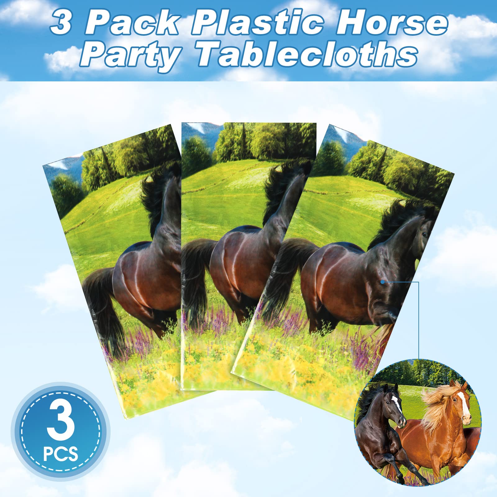 Tudomro 3 Pcs Horse Table Cover Tablecloth Party Decorations Morgan Wild Horse Racing Tablecloth for Derby Day Birthday Cowboy C