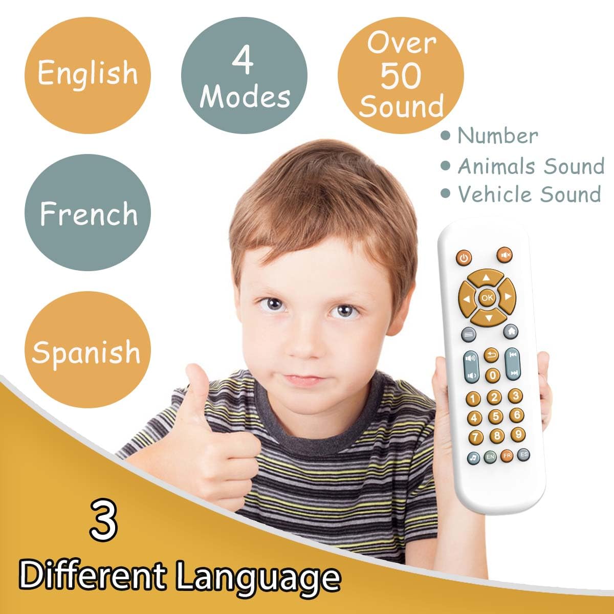 • Q: Can the TuiVeSafu remote toy help with language learning? A: Yes, this educational toy features three languages: English, French, and Spanish, allowing babies to start learning different languages through play.