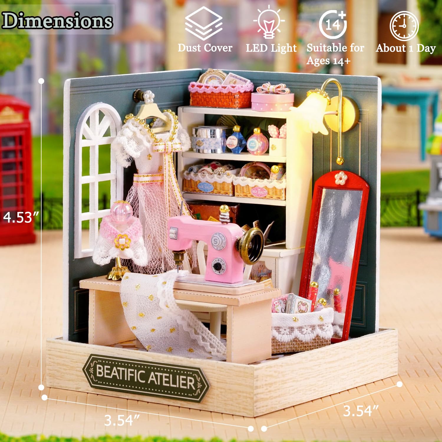 Tukiie Diy Miniature Dollhouse Kit With Furniture, 1:24 Scale Creative Room Mini Wooden Doll House Plus Dust Proof For Kids Teens Adults(Beatific Atelier)