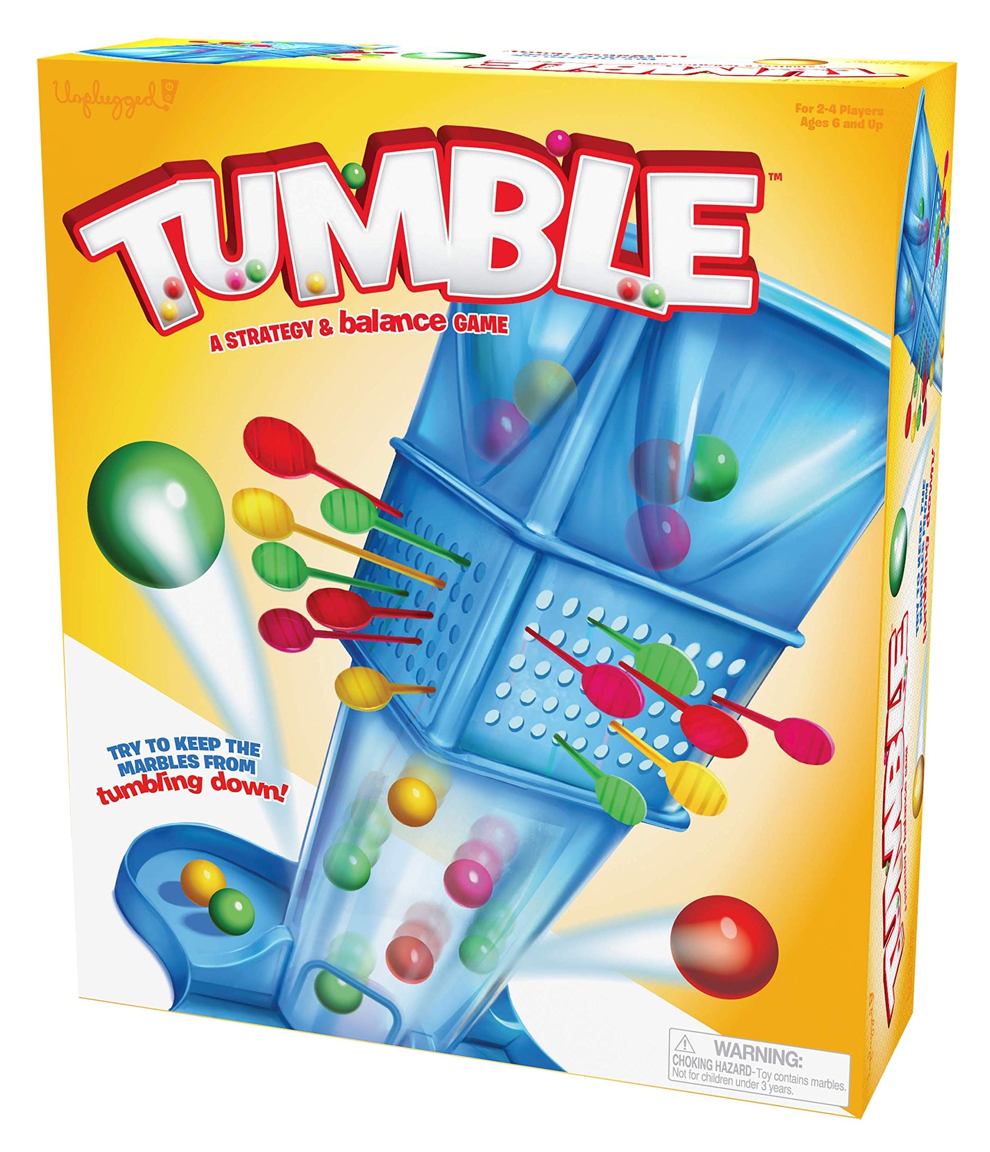 Product Description'Tumble has a well-known play pattern that kids love! Players try to pull out the sticks without letting any marbles tumble down. This game is a great addition to any STEM assortment and teaches spatial relationships and estimating. For 2-4 players, ages 6 and up.Players try to pull out the sticks without making any of the marbles fallWell-known play pattern that kids loveGreat for spatial relationships and estimatingA perfect addition to any STEM assortmentFor 2-4 players, ages 6 and up.'From the ManufacturerTumble kids game. Pull out a stick. See what happens as you try to keep the marbles from tumbling down. Plastic unit, sticks, and marbles. 2 to 4 players. Ages 6 and up.