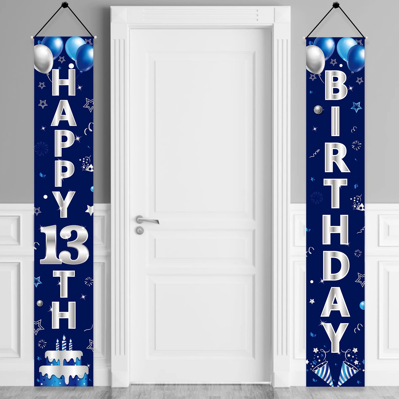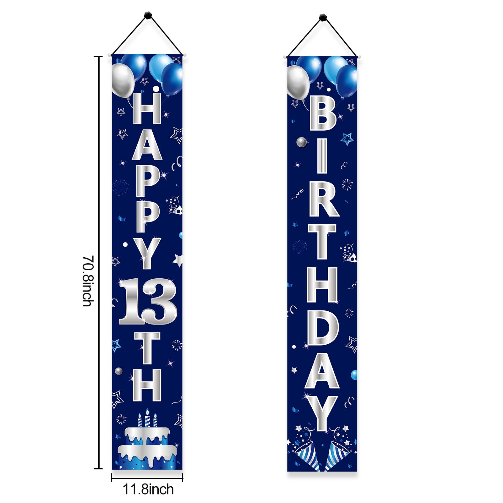 - Q: What size is the Turypaty Blue Silver 13th Birthday Door Banner? A: The Turypaty Blue Silver 13th Birthday Door Banner measures 70.8 x 11.8 inches, making it a perfect fit for your front door, porch, or as a decorative backdrop for your birthday celebrations.