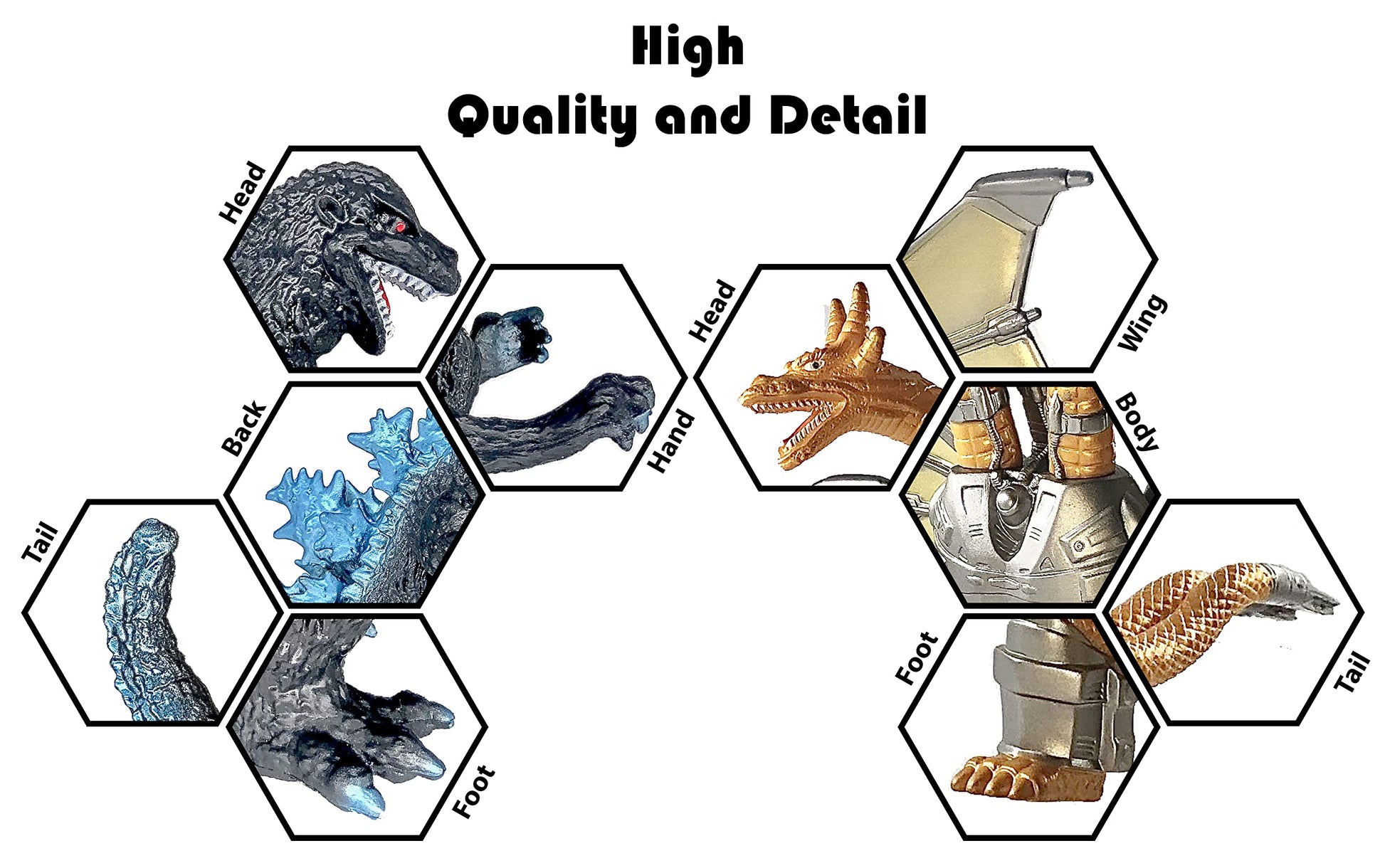TwCare Set of 2 Mecha King Ghidorah vs 1954 65th Anniversary vs Heisei Era Classic Godzilla Toy, 2021 Movable Joints Action Movi