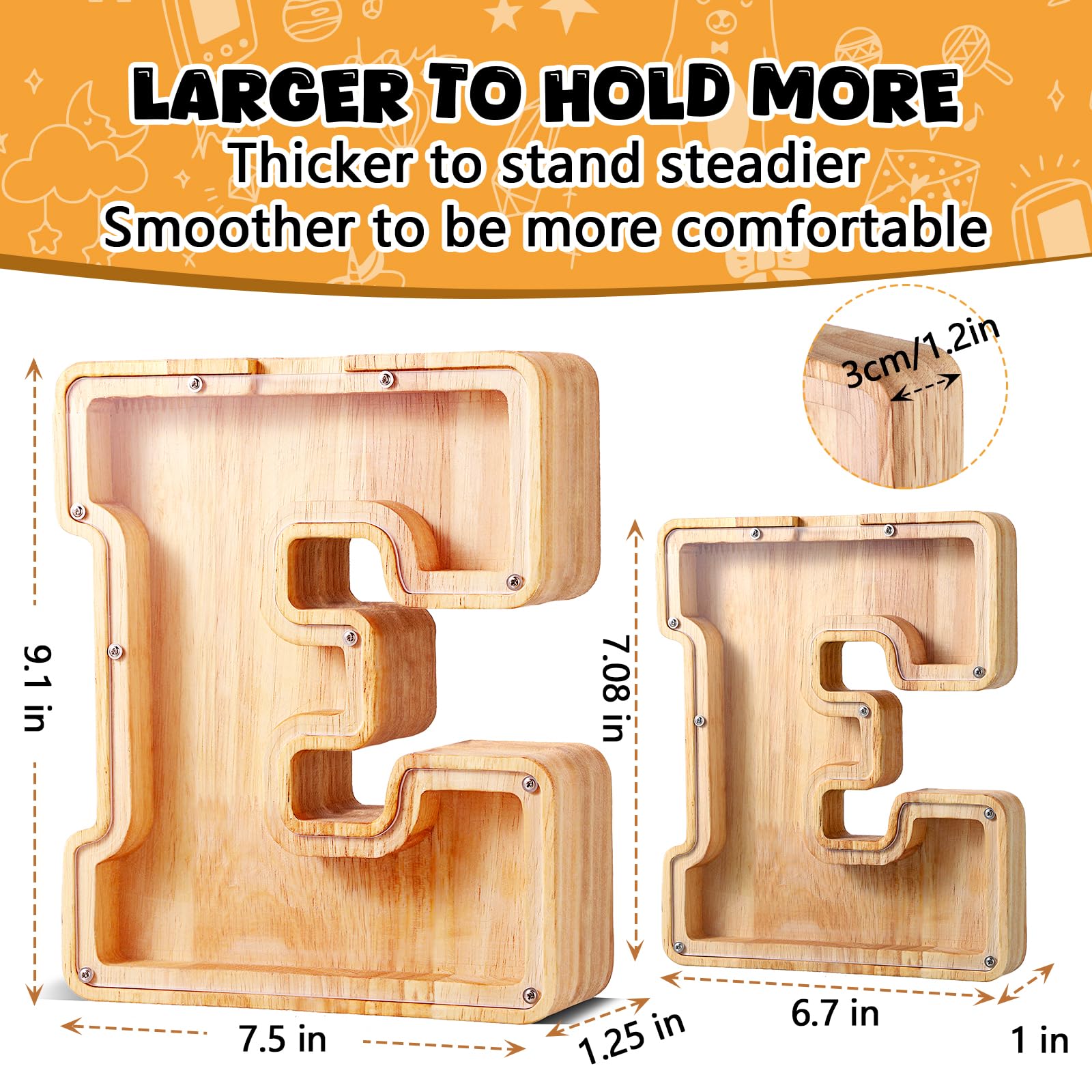 Ubeesize Cute Money Box For Boys And Girls,Unbreakable Wood Coin Bank,Twenty-Six English Alphabet Letter Piggy Banks,Gifts For Birthday, Christmas, Festival, Baby Shower(D)
