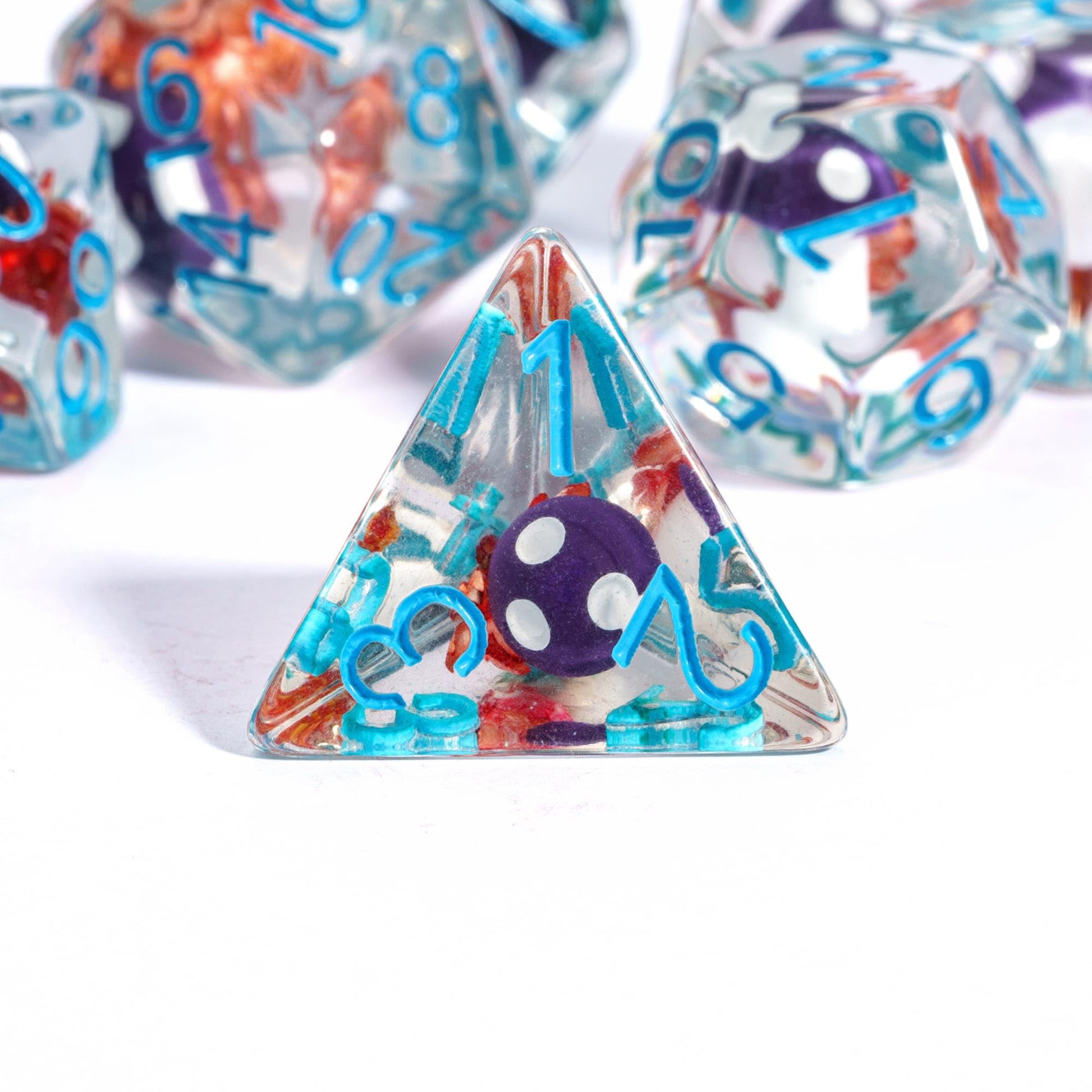 - Q: How easy is it to read the numbers on the dice? A: The dice feature blue fonts that provide a strong contrast against the transparent resin, making them easy to read during gameplay.