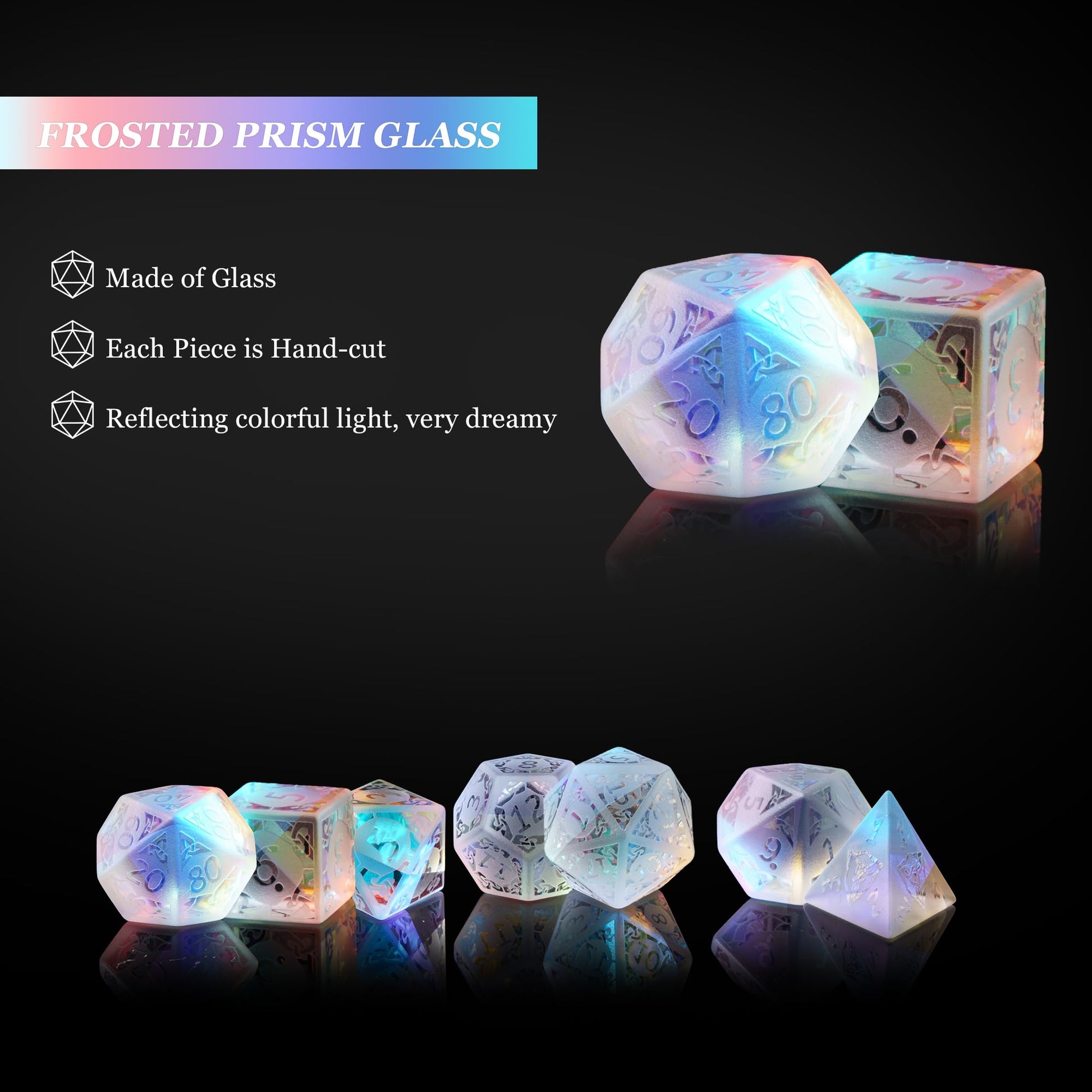 View compareUDIXI Prism Glass DND Dice Set, 7PCS Frosted Glass Dice Rainbow Glass D and D Dice for Dungeons and Dragons Table Games D&D (San