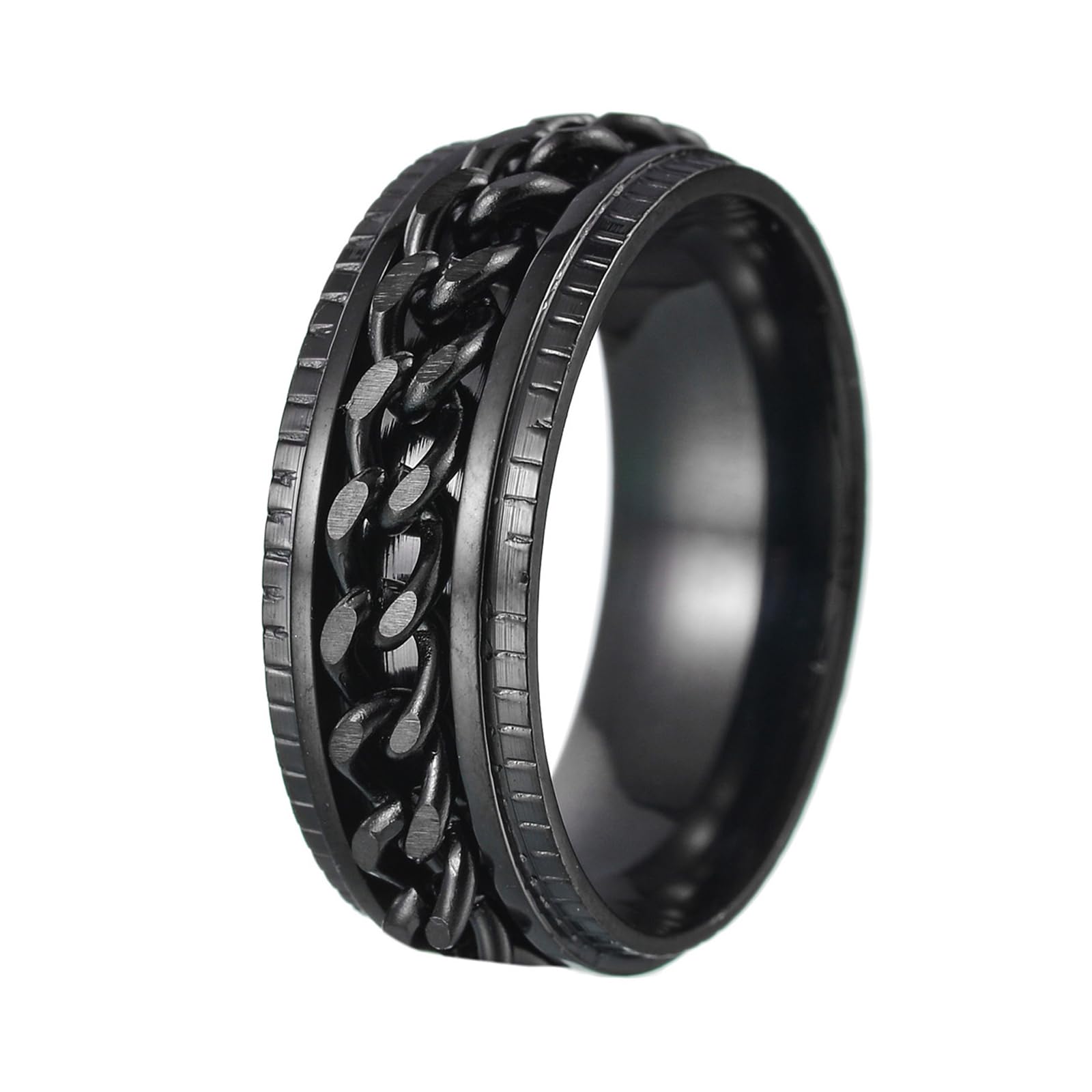 Udolfly Mens Fidget Rings Anxiety Rings For Men Womens Chain Spinner Rings For Adults Titanium Steel Ring Black Black Size 9