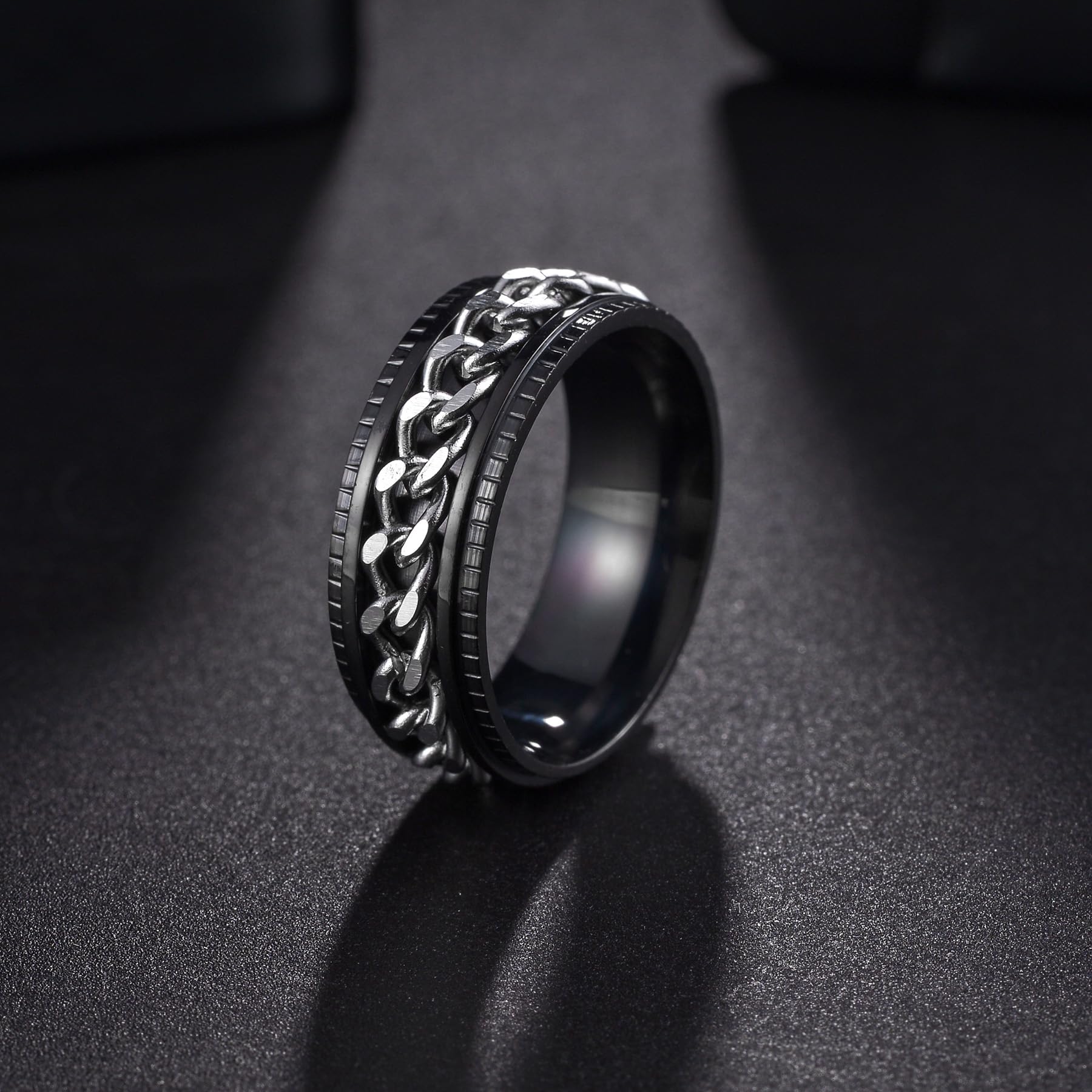 Udolfly Mens Fidget Rings Anxiety Rings For Men Womens Chain Spinner Rings For Adults Titanium Steel Ring Black Silver Size 11