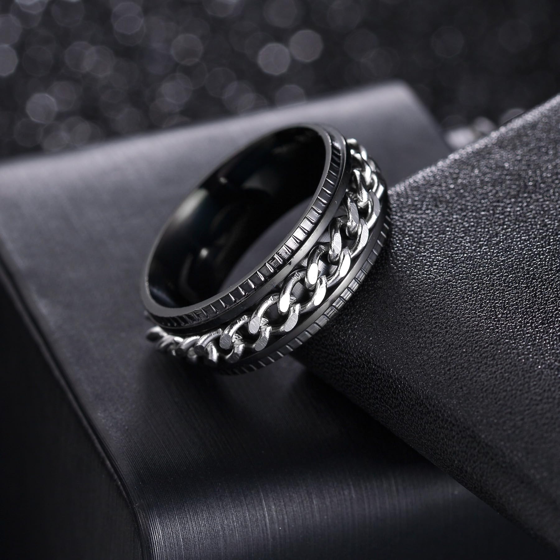 Udolfly Mens Fidget Rings Anxiety Rings For Men Womens Chain Spinner Rings For Adults Titanium Steel Ring Black Silver Size 13