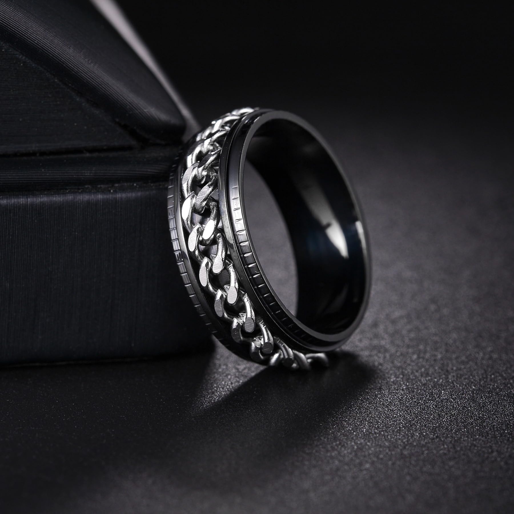 Udolfly Mens Fidget Rings Anxiety Rings For Men Womens Chain Spinner Rings For Adults Titanium Steel Ring Black Silver Size 8