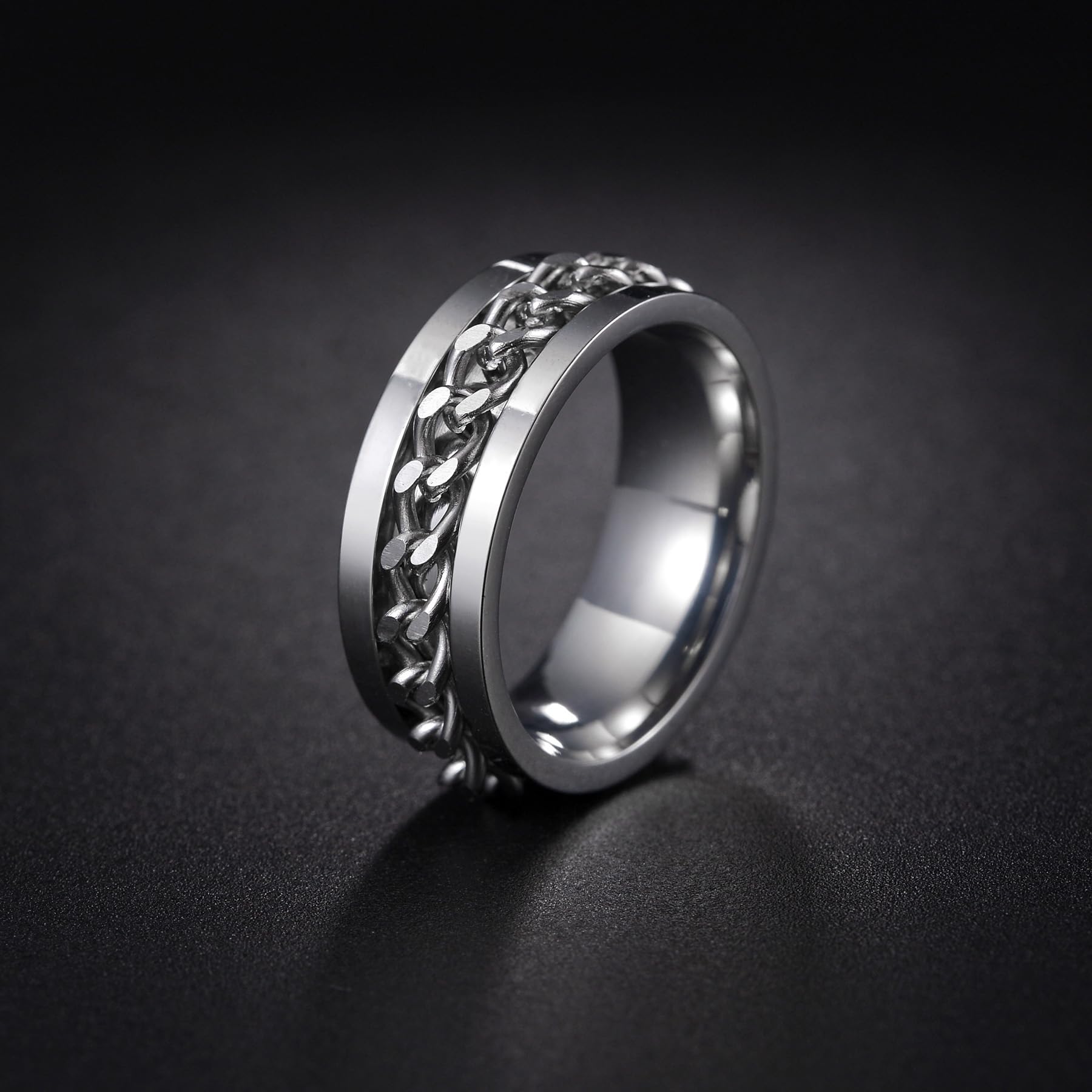 Premium Quality Material: 8Mm Wide Rings With High Polish And Sense Of Power. Made From Top-Grade Corrosion-Resistant, Hypoallergenic Titanium Stainless Steel, Solid And Durable | Stress-Relief Fidget Rings: Grooved Edge And Curb Chain Inlaid Design, Masculine And Trendy. Manually Spinning The Chain Helps Effectively Relieve Anxiety, Stress, Or Other Negative Emotions | Perfect Gifts For Men/Women: A Little Surprise For Friends Or Family To Express Your Sincere Love To Them On Christmas, Father'S Day, Birthday, Party, Valentine'S Day, Thanksgiving Day, Or Daily Wear, Etc. | Size Details: 8Mm Wide, Size 5-14 Available, Fit For Men/Women Perfectly. Please Check Your Size Carefully Before Your Purchase | Satisfactory After-Sale Service: If Any Questions Occur Regarding The Product Or Services, Please Contact Us. No Box Is Included