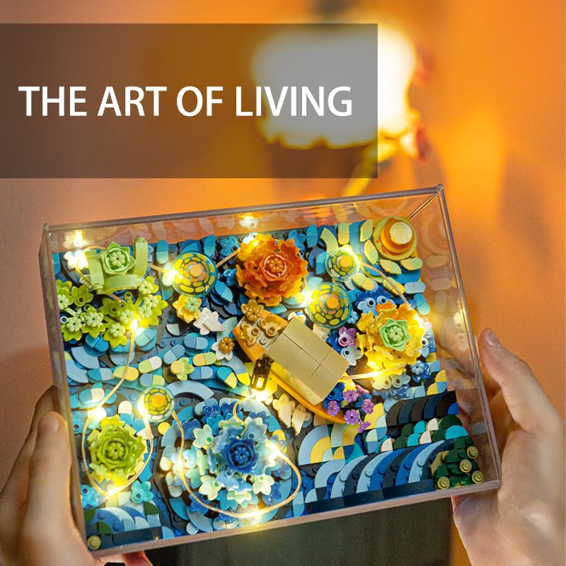 View compareUeuo Starry Sky Flower Night Building Block Set with dust Cover Artist Creative Painting Building Blocks Toys(922Pcs)