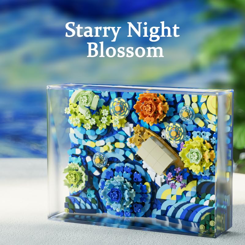 Ueuo Starry Sky Flower Night Building Block Set with dust Cover Artist Creative Painting Building Blocks Toys(922Pcs)