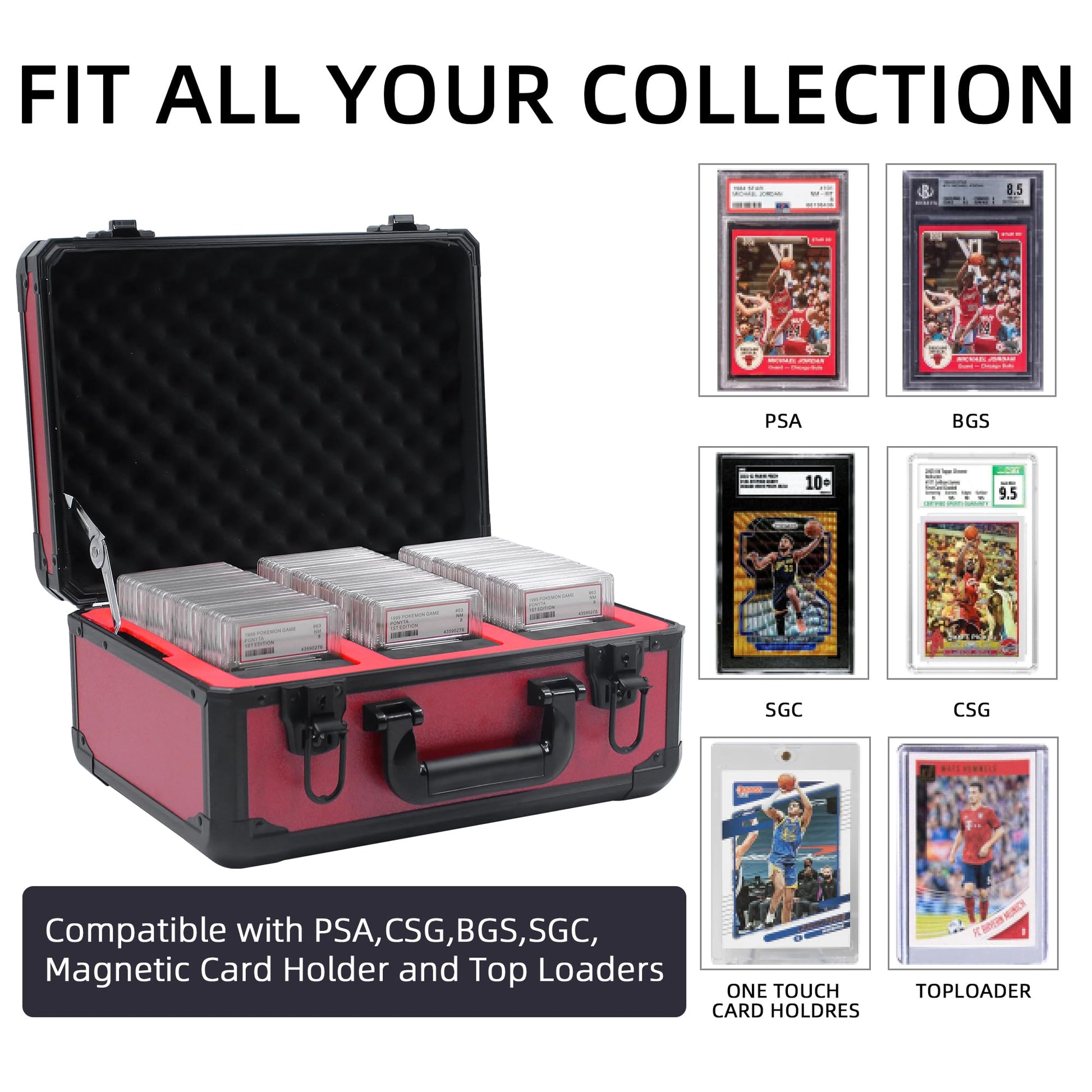 Premium quality red aluminum frame with durable ABS coated plate construction ensures long-lasting durability and protection for your graded card collection.