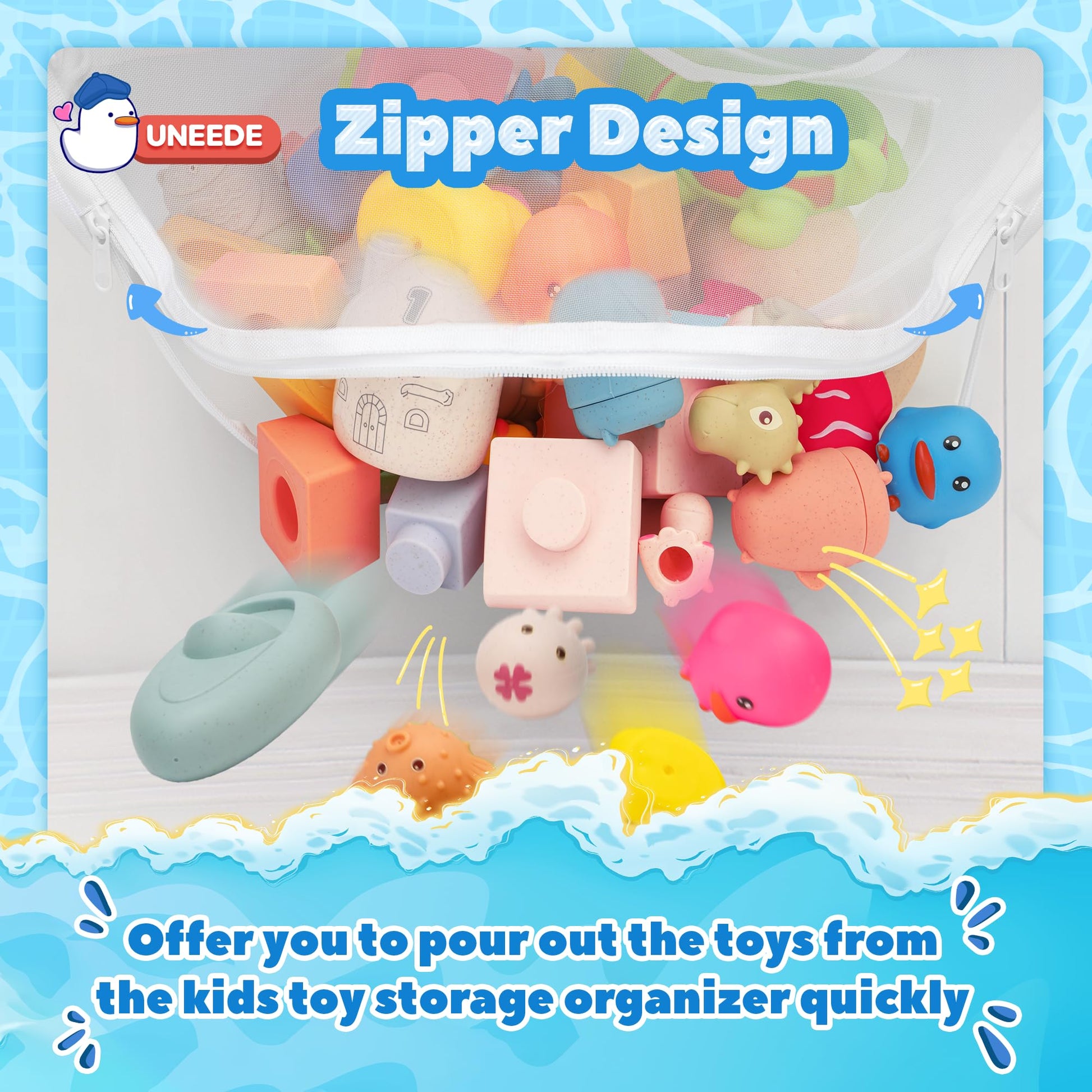 - Q: Is the UNEEDE Bath Toy Storage Holder suitable for outdoor use? A: While the UNEEDE Bath Toy Storage Holder is designed for moisture resistance, it is primarily intended for indoor bathroom use. If used outdoors, ensure it is protected from direct sunlight and extreme weather to prolong its lifespan.