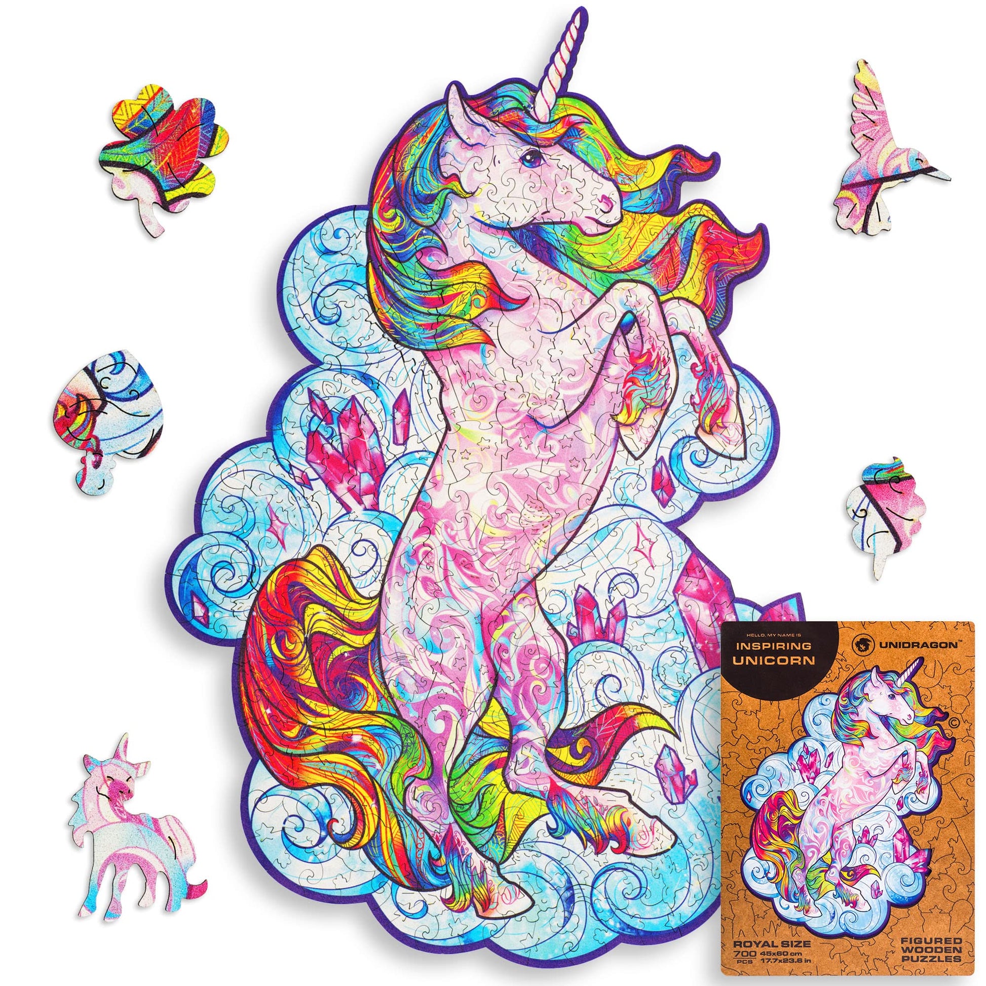 Unidragon Original Wooden Jigsaw Puzzles - Inspiring Unicorn, 700 Pcs, Royal Size 17.7'X23.6', Beautiful Gift Package, Unique Shape Best Gift For Adults And Kids