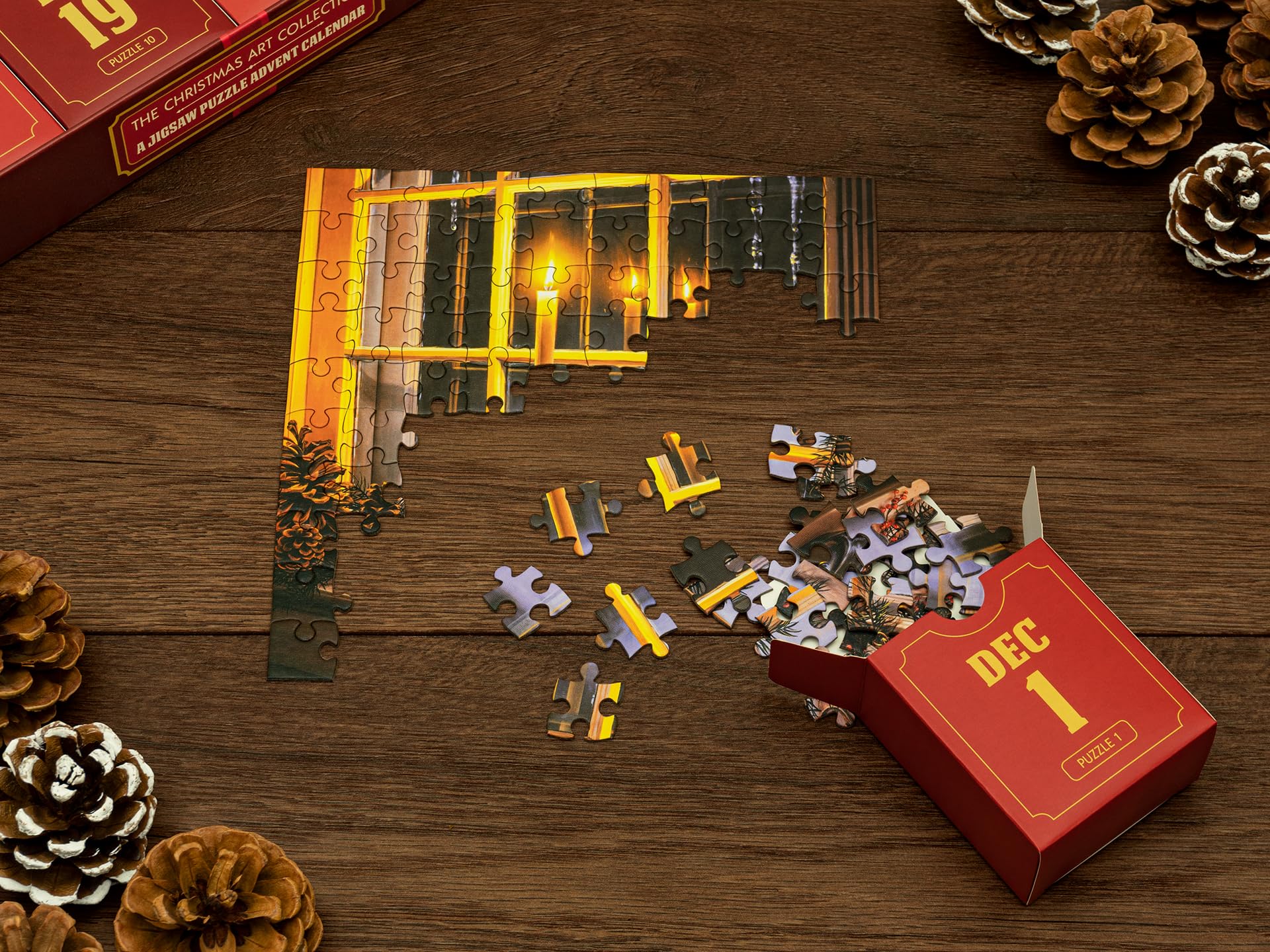 Unique Jigsaw Puzzle Advent Calendar 2024 – Collection Of Twelve 100-Piece Puzzles, 12 Days Of Xmas Holiday Countdown, Fun For Kids, Adults And Family, Licensed Artwork From 12 Well-Known Artists