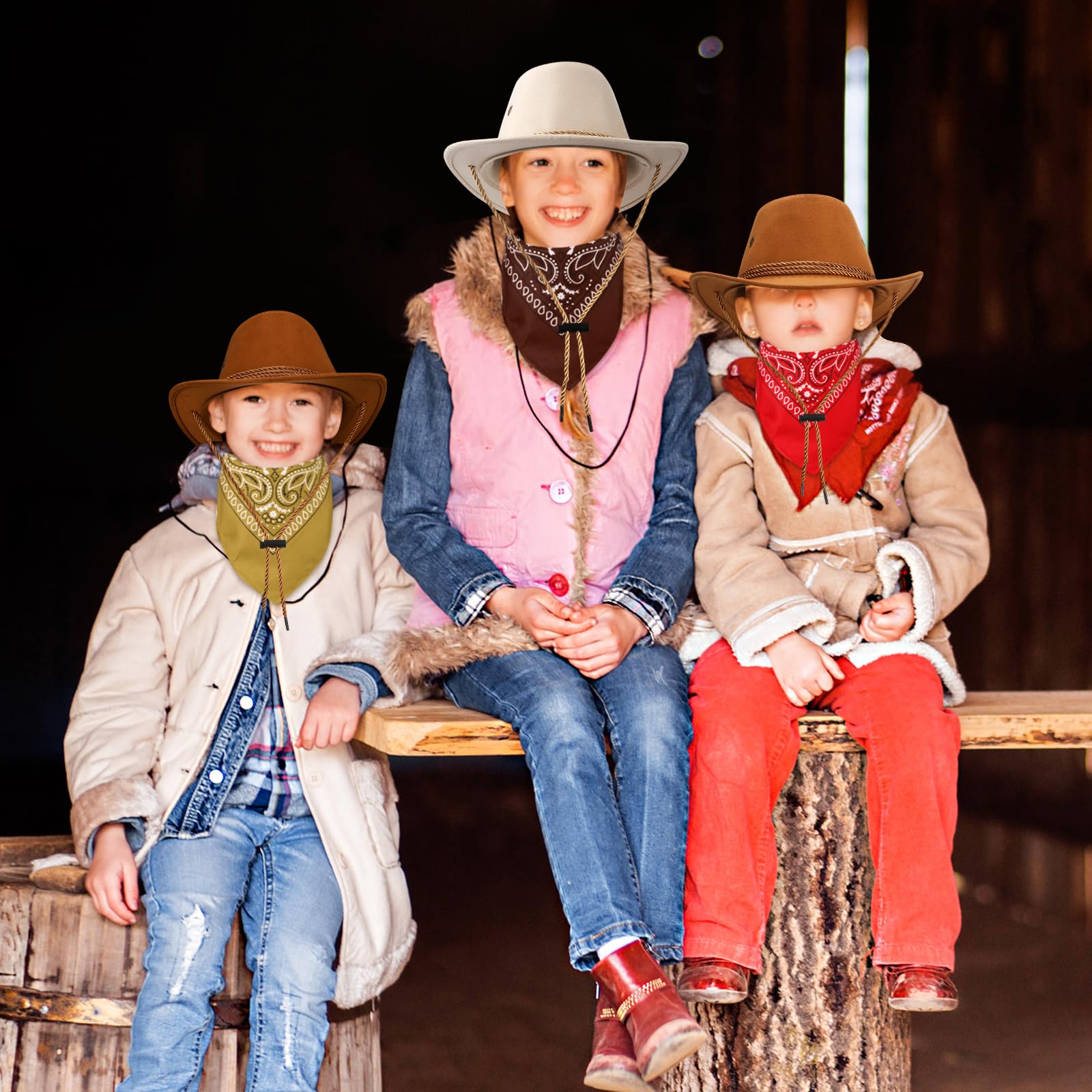 Unittype 20 Pcs Halloween Western Costume Cowboy Hats Set Kids Cowgirl Themed Party Felt Bandanna Hat with Paisley Bulk(Brown Se