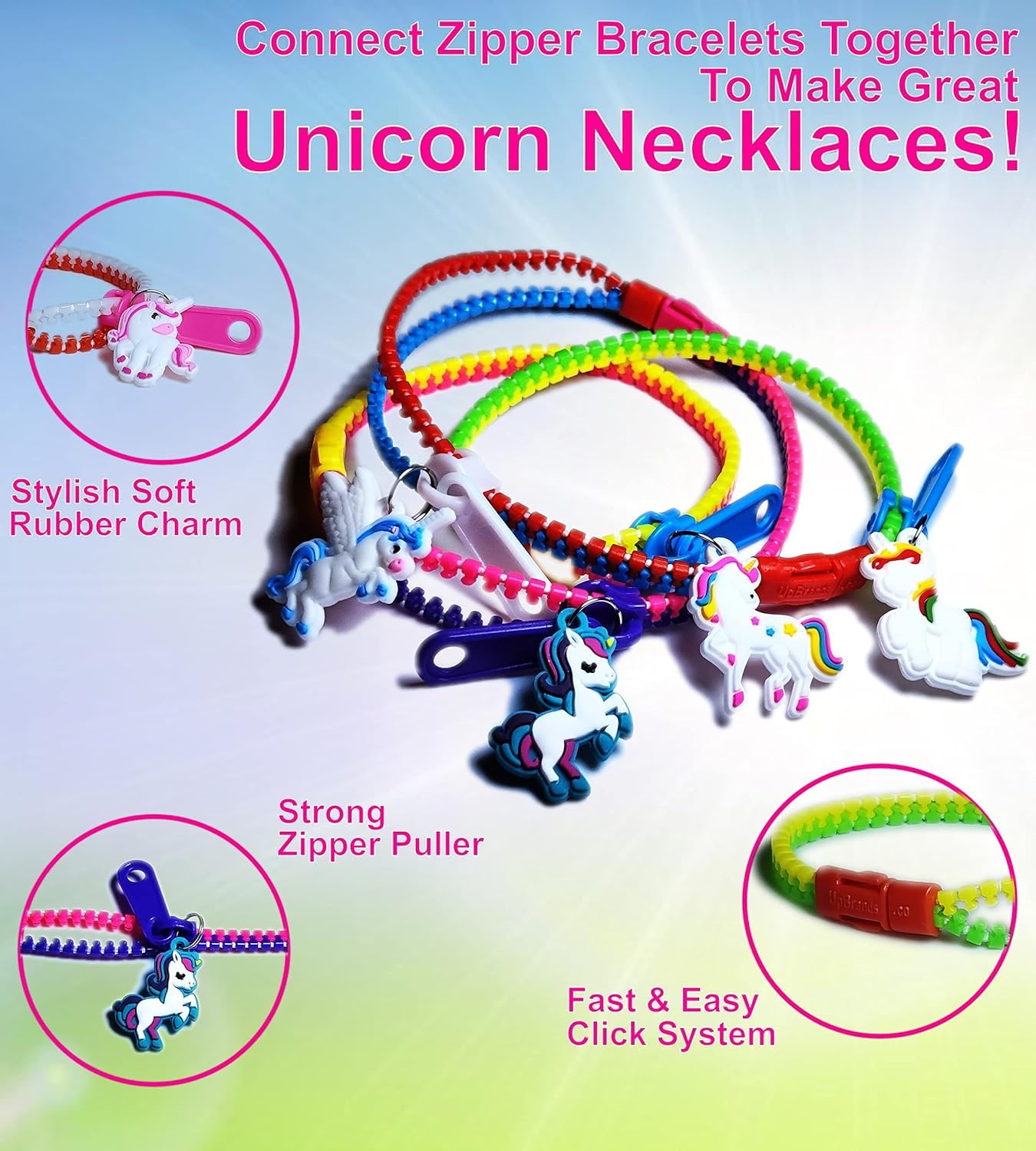 UpBrands Unicorn Valentine Gifts For Kids Zipper Bracelets Bulk Set, Kit for Unicorn Birthday Party, Goodie Bags & Stuffers, Per