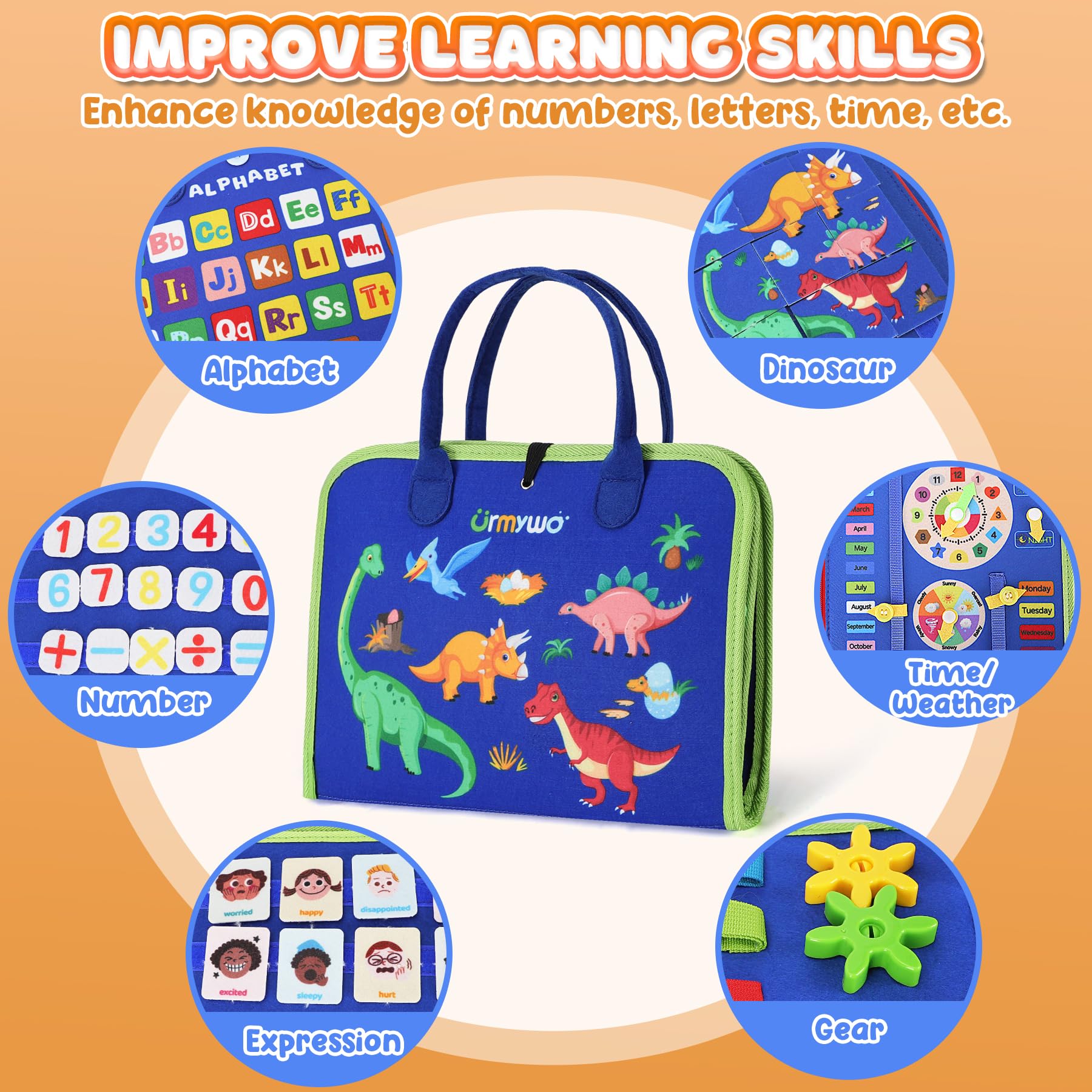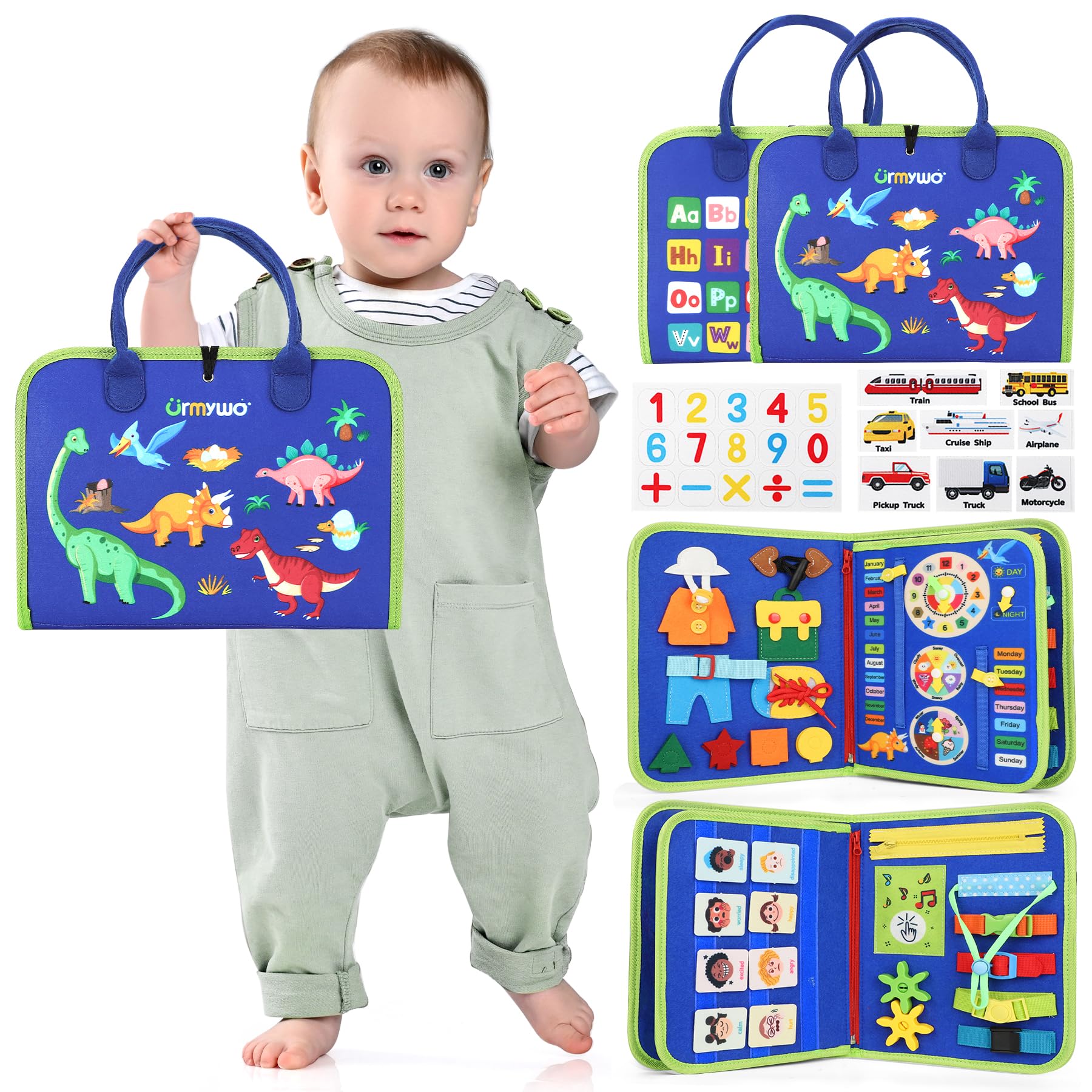 Urmywo Toddler Busy Board - Busy Book Montessori Toys For 1 2 3 4 Year Old - Preschool Learning Activities With Alphabet Number Animal, Educational Travel Toys Easter Basket Stuffers, Gifts For Kids