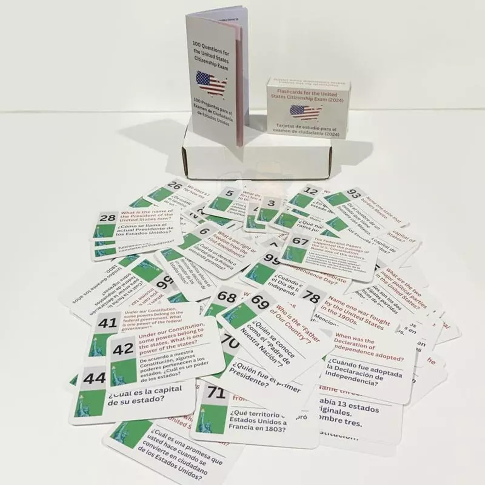 Master the US citizenship test with confidence using this comprehensive bilingual flash card set designed for the 2025 naturalization exam. This study aid includes all 100 official USCIS civics questions and answers in both English and Spanish, making it perfect for Spanish-speaking applicants preparing for their citizenship journey. Each card features clear, easy-to-read text with questions on one side and detailed answers on the reverse. The flash cards cover essential topics including American government, history, geography, and constitutional principles. Whether studying alone or with a group, these cards provide an effective way to learn and retain the required information. The portable format allows for convenient study sessions anywhere, anytime. Take control of your citizenship preparation with this practical learning tool that helps you thoroughly understand and memorize the official USCIS test content.